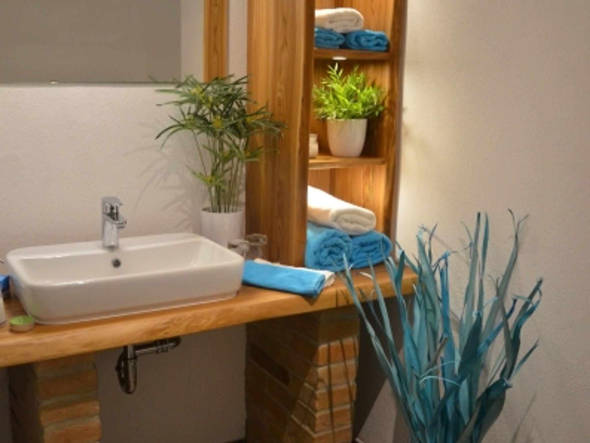 Im kombinierten Wohn- und Schlafraum befindet sich ein Boxspring-Doppelbett, eine ausziehbare Schlafcouch, Essecke, SAT-TV und W-LAN. Eine kleine Küchenzeile (kein Kochherd) ist mit Küchenutensilien, Kühlschrank, Wasserkocher, Kaffeeautomat und Spülbecken ausgestattet. Das Badezimmer hat eine begehbare Dusche und ist mit Hand-/Badetüchern sowie mit Fön und Toilettenartikeln versehen. Keine Tiere, Nichtraucher. Kostenlose Unterstellmöglichkeit in abschließbarer Garage für Fahrräder, Bikes oder andere Sportgeräte. Separater Garten mit überdachten Freisitz