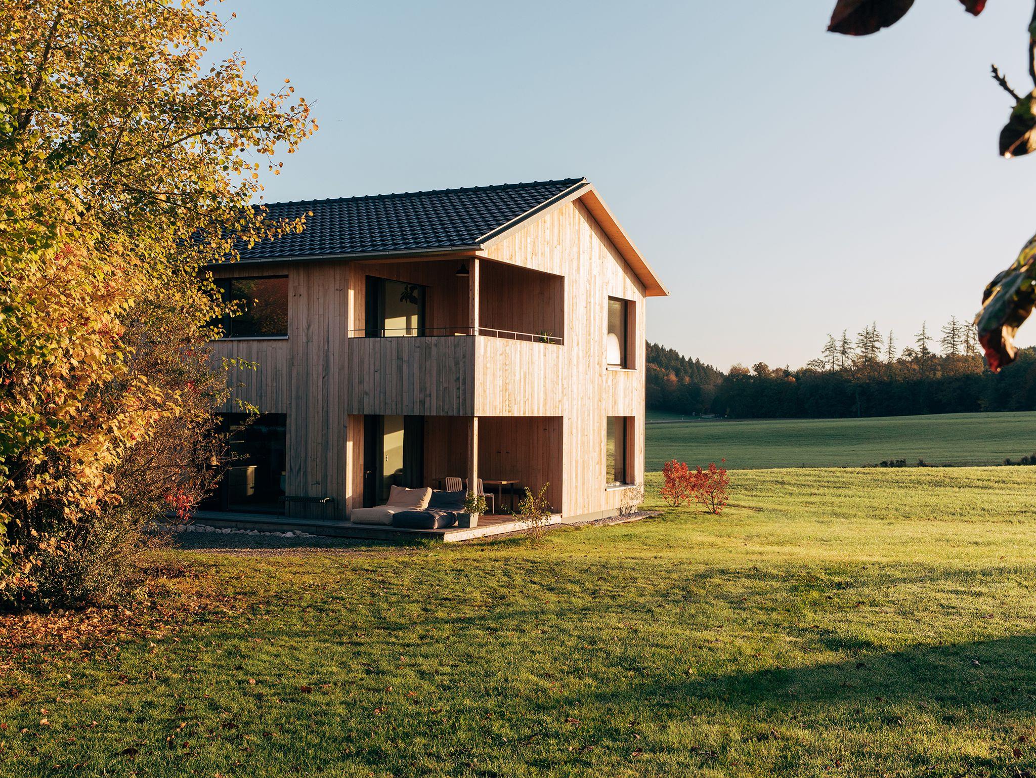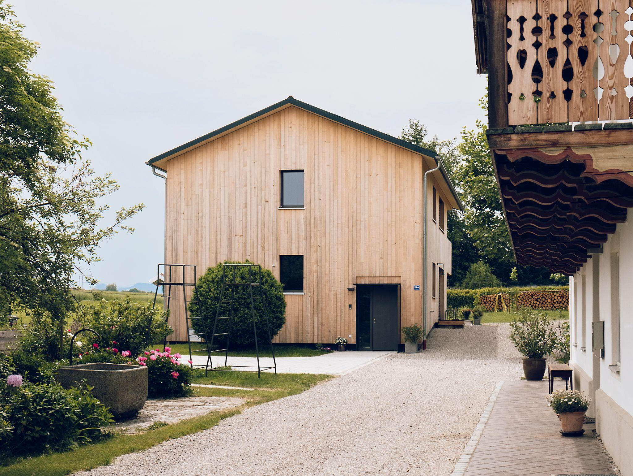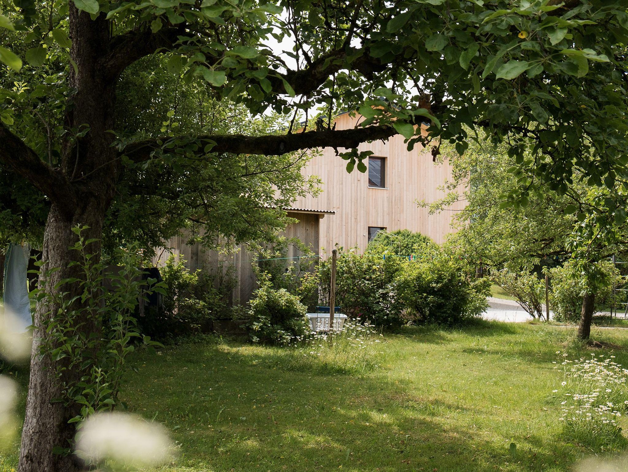 Das Ferienhaus Schmidhuber liegt neben dem historischen Schmidhuberhof in einem Obstanger am Ortsrand von Tabing. Das moderne Holz-Passivhaus wurde 2019 fertig gestellt und beherbergt zwei außergewöhnliche Ferienwohnungen. Jede Wohnung verfügt über einen offenen Wohnbereich mit großer Küche und Essplatz, zwei Schlafzimmer sowie ein Bad mit Regendusche und Badewanne. Die Wohnungen haben nach Süd/West ausgerichtete Loggien. In der EG-Wohnung MAX gibt es eine weitere nach Osten gelegene Frühstücksterrasse. Die Wohnung KATHI?im OG besticht durch ihre Raumhöhe und den traumhaften Blick. Alle Räume verfügen über Fußbodenheizung in Kombination mit kontrollierter Wohnraumlüftung, elektrischen Außenjalousien und Mückenschutz. Der weitläufige Garten mit Wiese zum Austoben, Riesentrampolin, Tischtennis, Grillplatz, Hängematte, Naturteich und Kräutergarten steht allen Gästen zur Verfügung. Ruhe, Natur, schöne Architektur und der Chiemsee um die Ecke machen diesen Ort zum idealen Urlaubsziel für Paare und Familien.Inklusive: W-Lan, Parkplatz mit E-Ladesäule, Bettwäsche, Handtücher, Endreinigung, Soundbox, Nutzung von Waschmaschine, Trockner uvm.