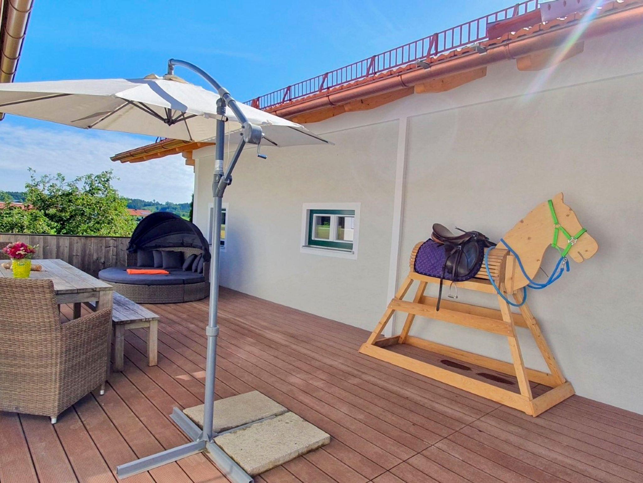 Unser renoviertes Bauernhaus mit Hof befindet sich in absoluter Alleinlage mitten von grünen Wiesen, fernab von Straßenverkehr mit viel Platz. Sie können die Ruhe der Natur genießen, während die Kinder sich am hauseigenen Spielplatz vergnügen. Ob Trampolin Sandkasten, Schaukel, großer Fuhrpark, Kicker oder Tischtennisplatte laden bei uns zum Toben und Entdecken ein. Ihren Kindern wird nicht langweilig werden, währen sie sich auf Terasse, Balkon oder einer Liege im Garten vom Alltagsstress erholen. Unsere Alpakas, Hasen, Meerschweinchen und Hühner freuen sich schon auf ausgiebige Streicheleinheiten und das ein oder andere Leckerchen!Wir haben Alpakas. Gerne machen wir mit Ihnen eine Wanderung durch die Natur, in der man die Ruhe der Alpakas und der schönen Natur erfahren kann. Wer etwas Abwechslung braucht kann fährt zum 3km entfernten Chiemsee Strand zum Baden und Sonnen oder fährt mit der Chiemseeschifffahrt auf die Inseln im Bayerischen Meer. Auch hier warten tolle Sehenswürdigkeiten darauf entdeckt zu werden. Radfahren, Wandern, Freizeitparks, durch Altstadtgassen schlendern oder wilde Schlauchbootfahrten erleben / Erholung und Erlebnisse finden Sie in unserer Umgebung genug!