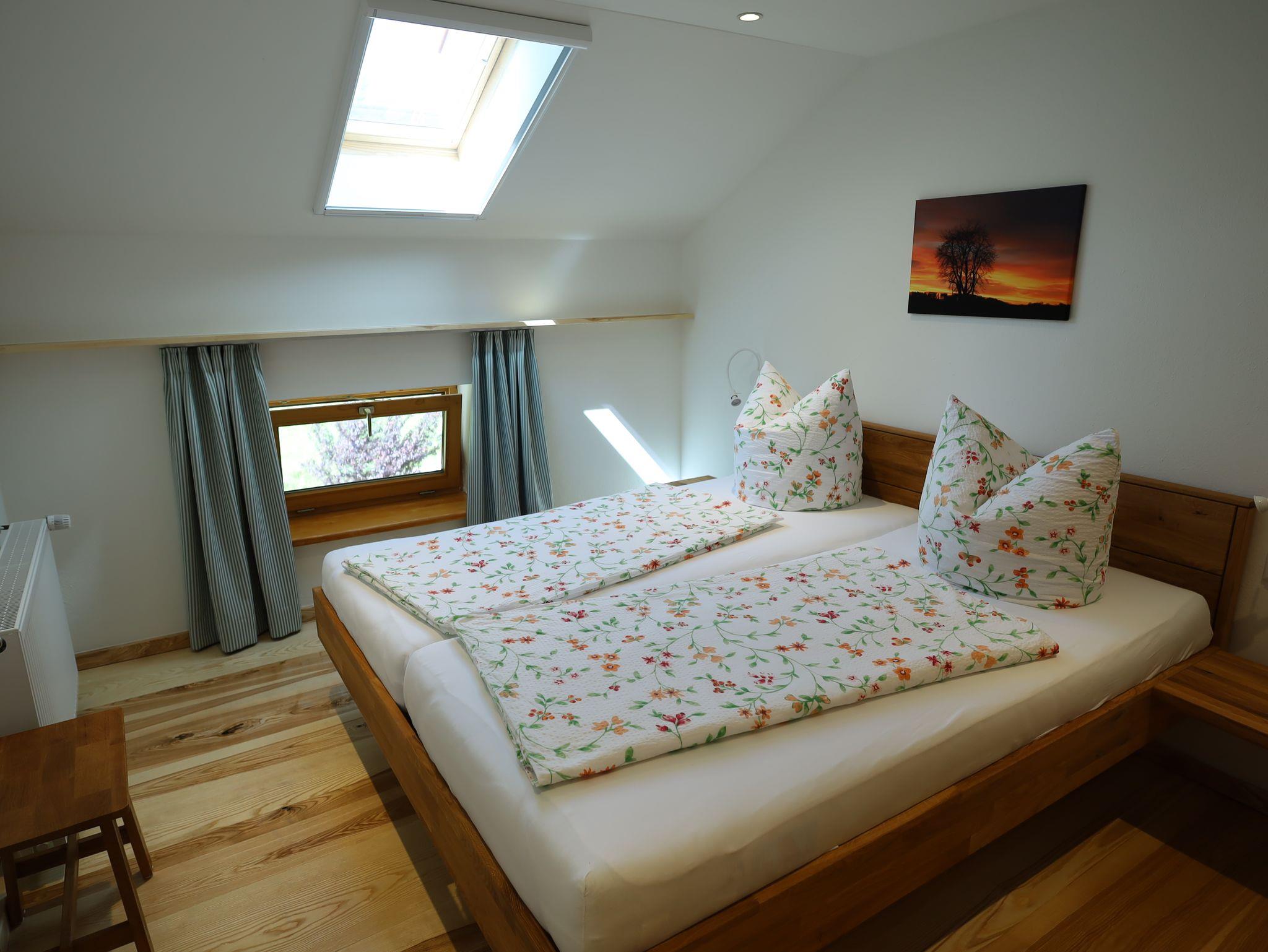 In der Ferienwohnung Kleeblatt, die für 2-6 Personen geegnet ist, werden Sie ein einzigartiges Wohnerlebnis erfahren. Das Besondere an dieser Wohnung ist die verwinkelte Bauweise, die sie so gemütlich macht. Zudem breitet sich die Ferienwohnung auf zwei Stockwerke aus. In der oberen Etage befindet sich ein Schlafzimmer, das meist von den Eltern im Urlaub mit Kindern genutzt wird. Die restlichen 2 Schlafzimmer befinden sich gemeinsam mit der Küche und dem Wohnzimmer im unteren Stockwerk.
