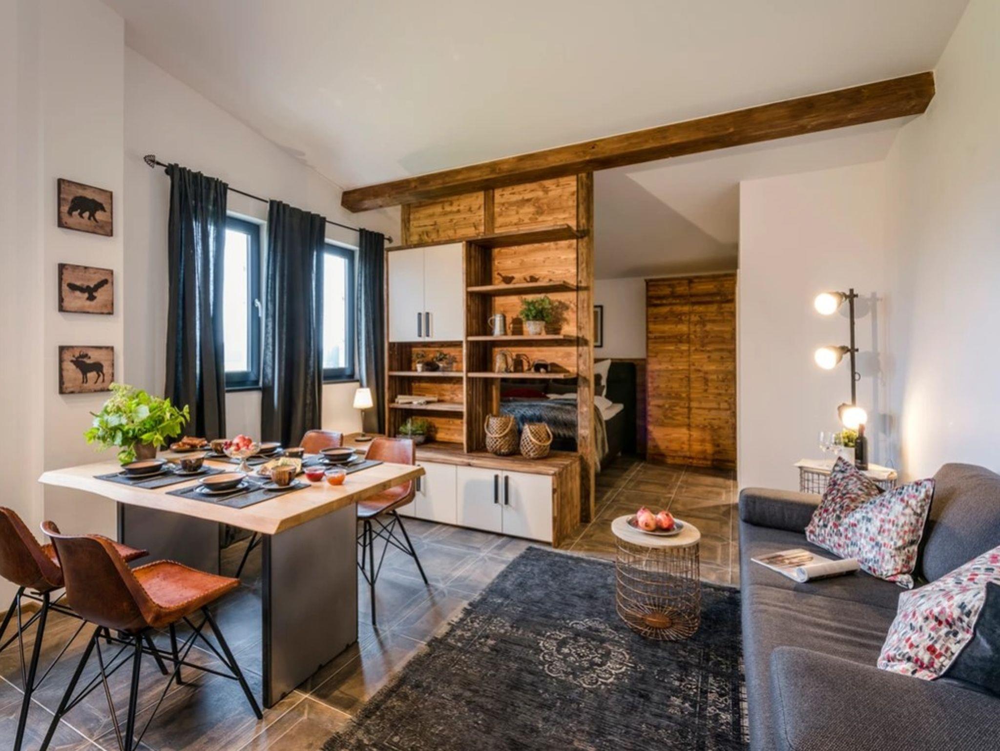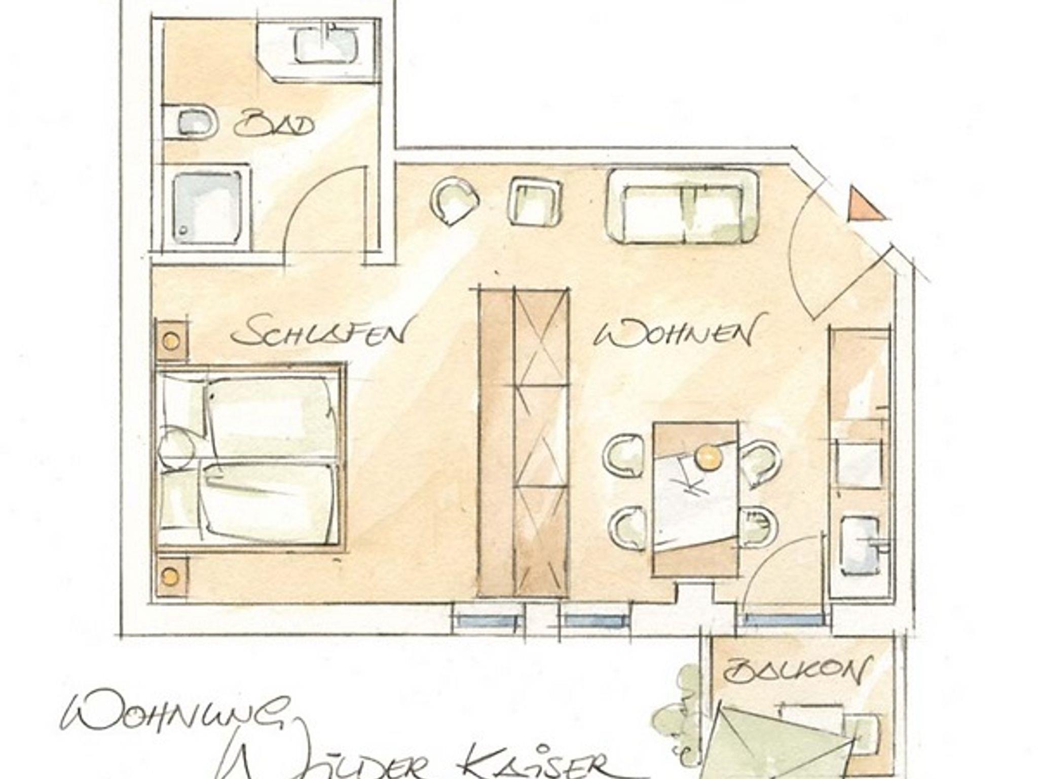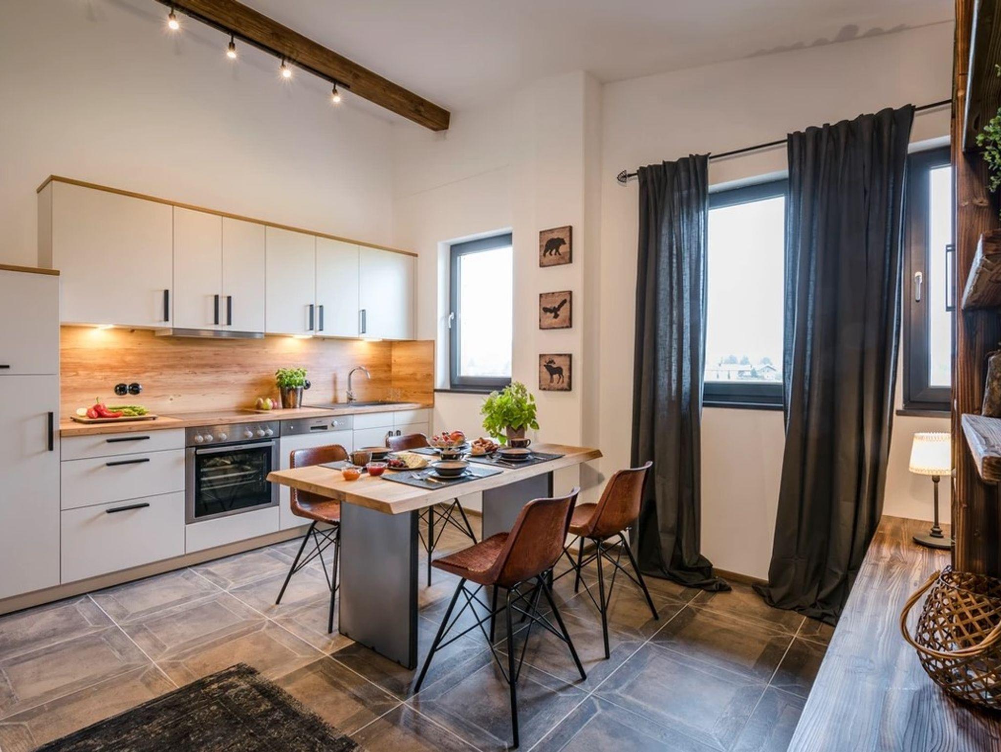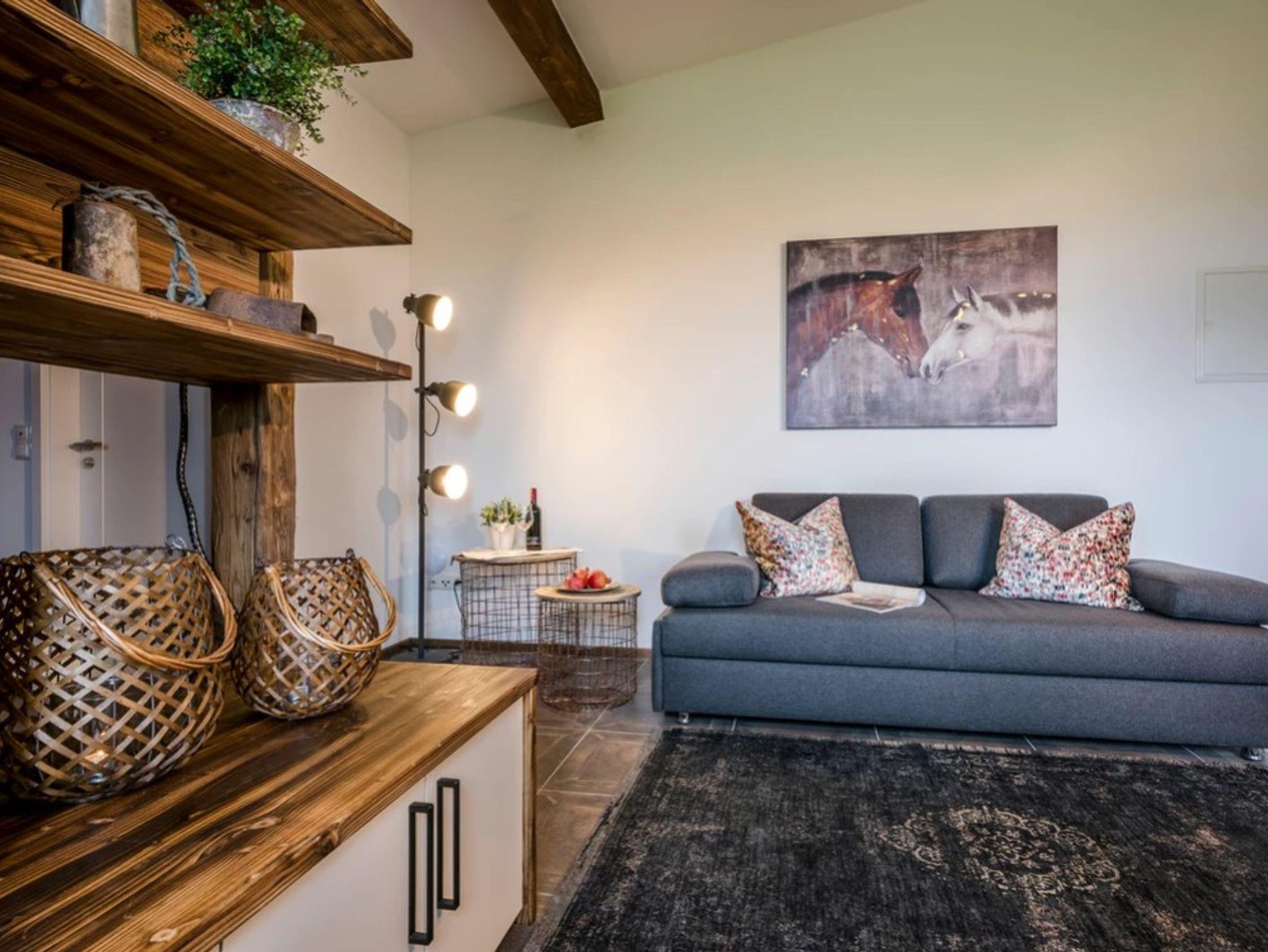 Die Ferienwohnung Wilder Kaiser bietet mit einer Größe von etwa 40 qm reichlich Platz für bis zu 4 Personen. Es ist möglich das Sofa in eine Schalfcouch für zwei Personen umzuwandeln. Die gemütlich eingerichtete befindet sich im 1. Stock und verfügt über einen Wohn-/Schlafbereich mit Doppelbett. In der nach Süden ausgerichteten Küche haben Sie freiem Blick in die Natur und auf unsere imposanten Chiemgauer Berge. Die komplette Wohnung wurde durch ausgewählte Details, Stoffe und Farben liebevoll zum Wohlfühlen eingerichtet.