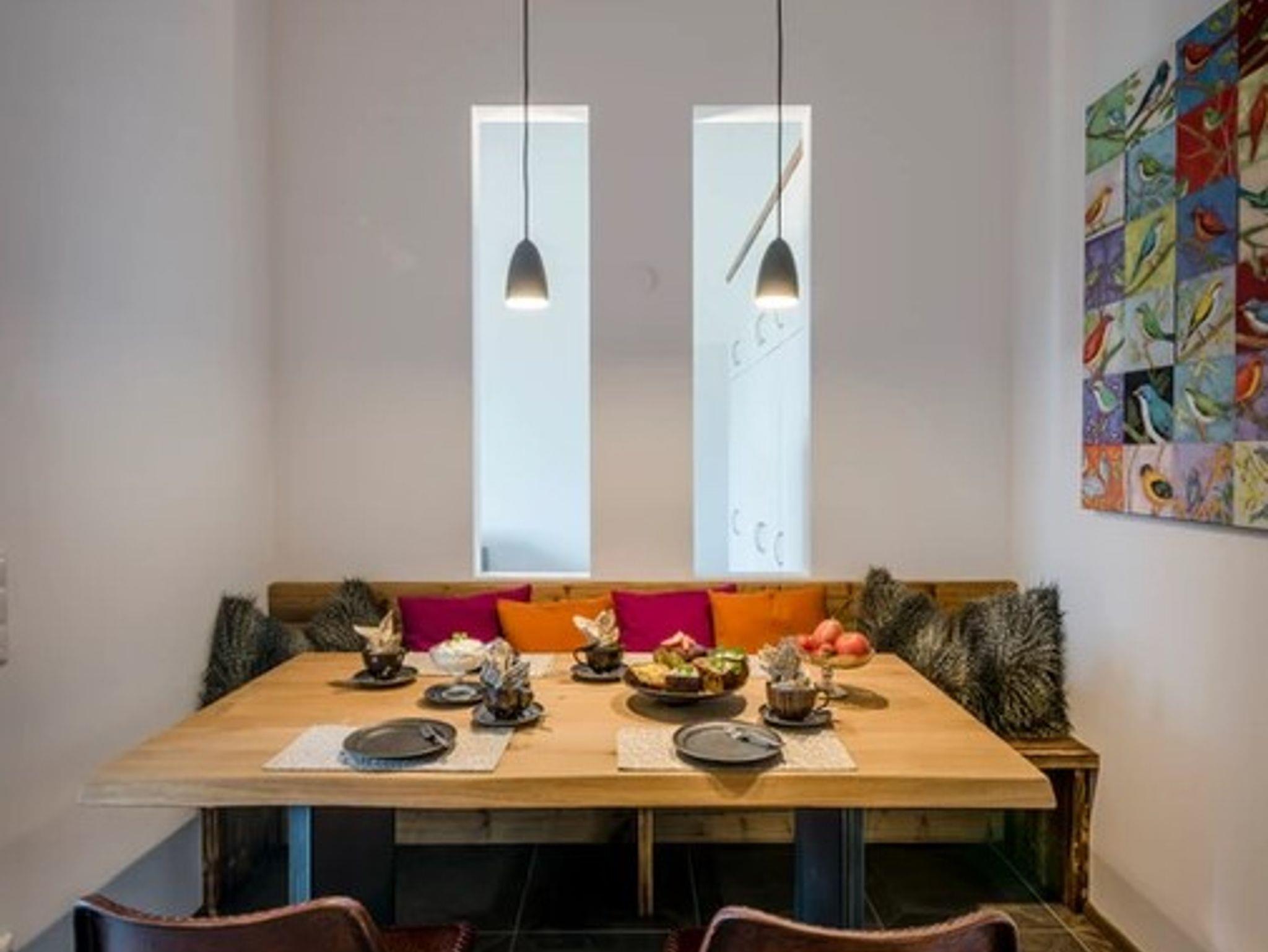 Die Ferienwohnung Sonntagshorn bietet mit einer Größe von etwa 70 qm reichlich Platz für bis zu 4 Personen. Die gemütlich eingerichtete Ferienwohnung befindet sich im 1. Stock und verfügt über ein separates Schlafzimmer mit Doppelbett und ein ausklappbares Schrankbett. Über den nach Süden ausgerichteten Wohnbereich geht es direkt auf den eigenen Sonnenbalkon mit freiem Blick in die Natur und auf unsere imposanten Chiemgauer Berge. Die Küche wie auch die übrige Ausstattung wurde durch ausgewählte Details, Stoffe und Farben liebevoll zum Wohlfühlen eingerichtet.