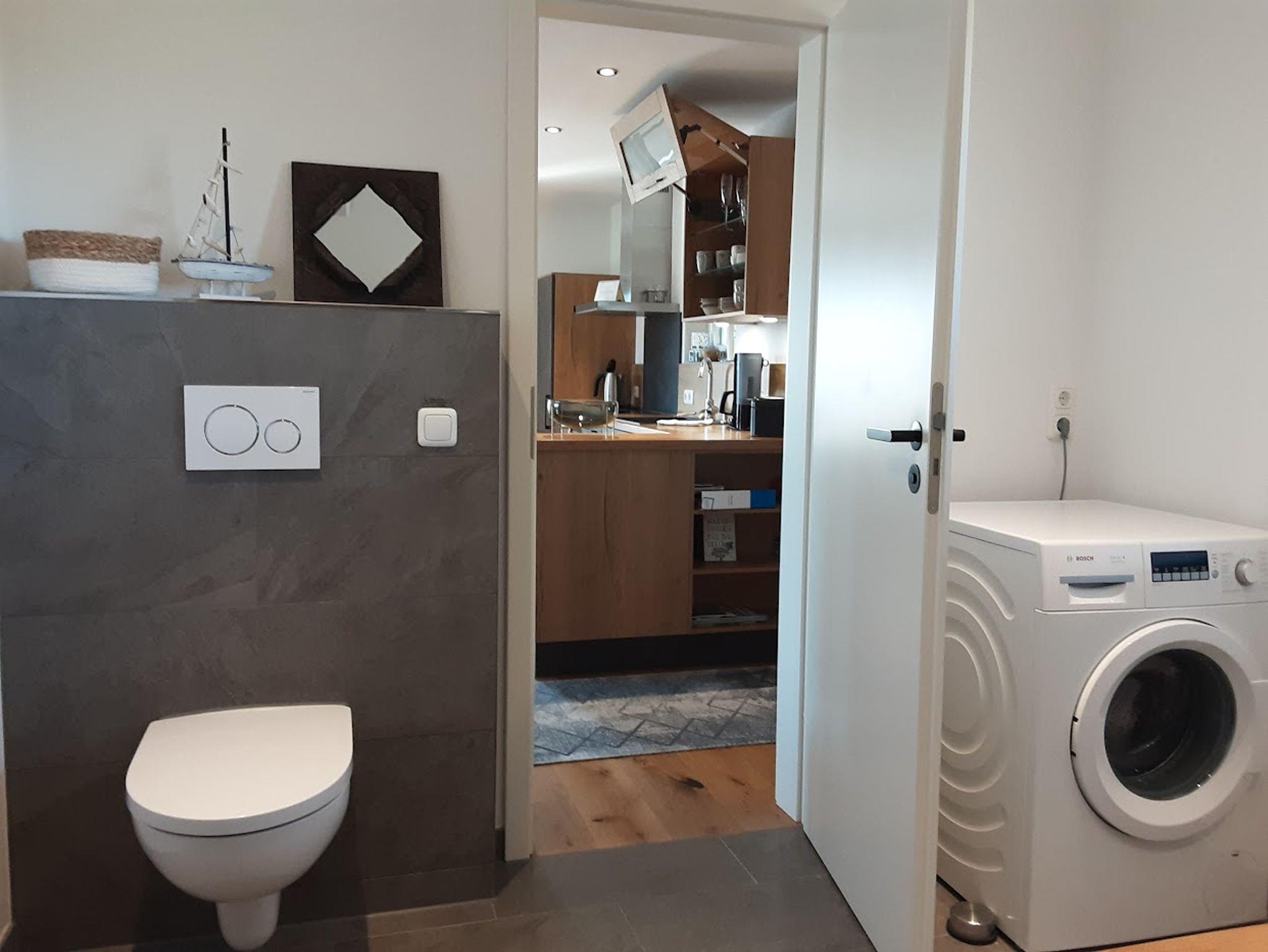Unsere offene Wohnküche lädt Sie ein zum Kochen, Essen und Plaudern. Sie verfügt über einen großzügigen Koch-Essbereich der in die TV- Ecke übergeht. Die Küchenzeile ist gut ausgestattet mit einem Backofen, Cerankochfeld, Kühl-Gefrierkombination, Spülmaschine, Kaffeemaschine, Mikrowelle, Toaster, Wasserkocher. In der TV Ecke finden Sie eine Couch mit Schlaffunktion,einen Flach-TV und eine Leselampe. Nutzen Sie unser freies WLAN.Das helle Badezimmer besticht durch seine Regendusche und den Waschtisch aus echtem Holz.WC, Waschmaschine, Handtuchtrockner, Fön und Handtücher sind in dem geräumigen Bad vorhanden. Sanften und erholsamen Schlaf verbringen Sie in einem weißen, romantischen Doppelbett im schlichten Design, der freundliche und warme Stil hat eine beruhigende Wirkung. Für die Unterbringung Ihrer Bekleidung dient ein 2-türiger Kleiderschrank aus Holz. Zur Abdunkelung der Räumlichkeiten gibt es in jedem Zimmer farblich abgestimmte Vorhänge, Bettwäsche ist auch für Sie da. Relaxen Sie auf dem schönen Balkon der über den Wohn und Schlafbereich zu erreichen ist. Nutzen Sie die Sitzgelegenheit für ein schönes Frühstück und genießen Sie auf den Liegen den Ausblick auf die heimischen Berge.