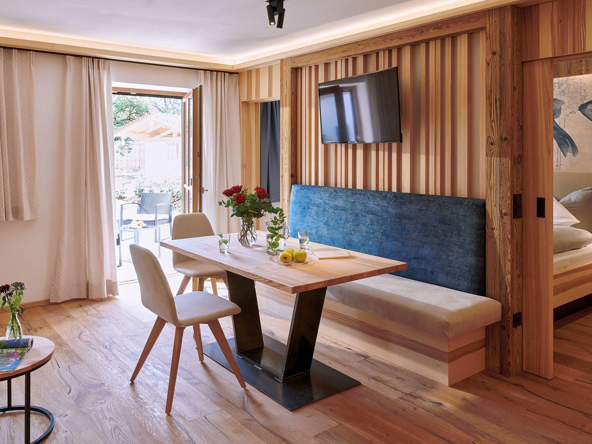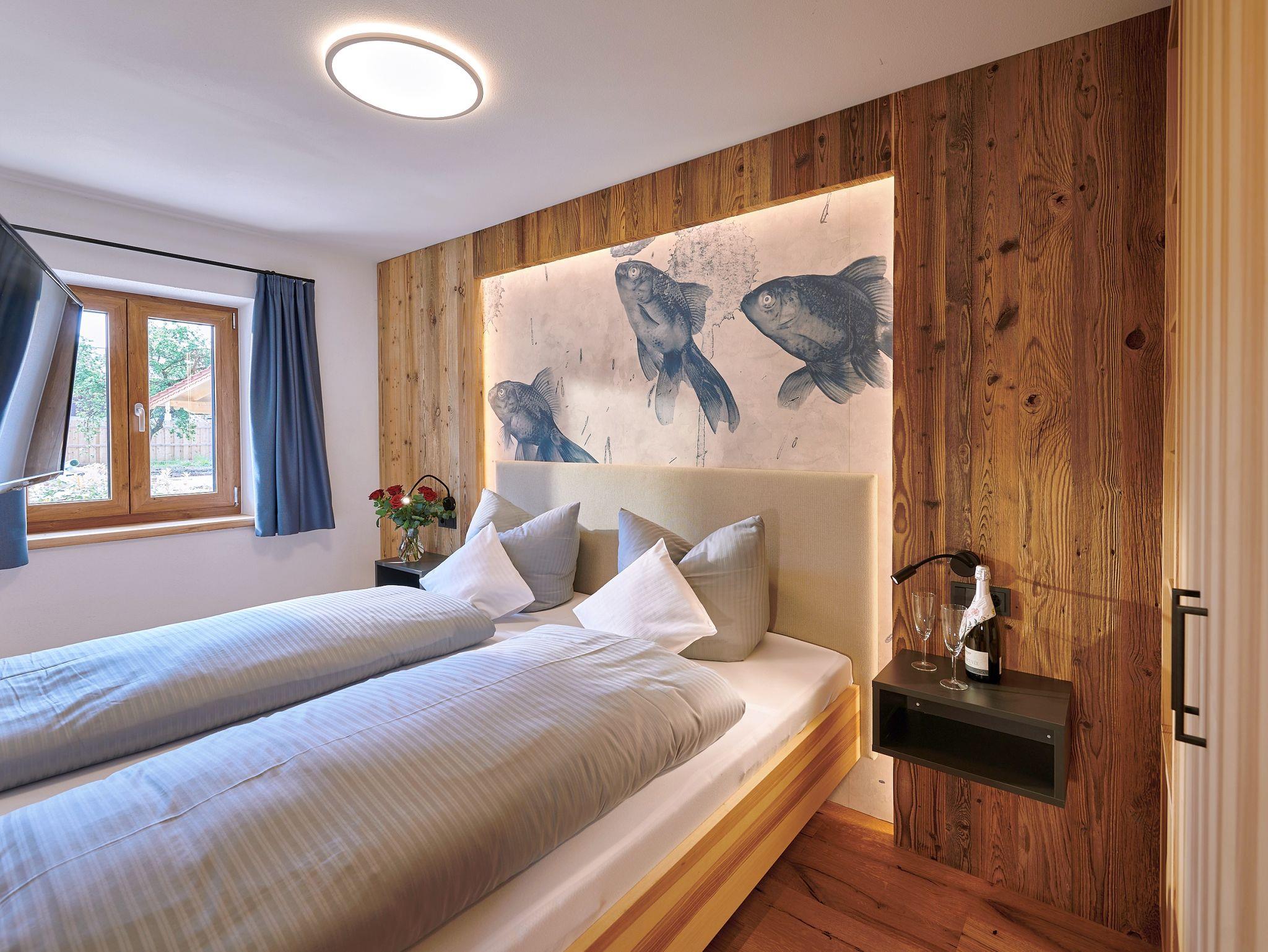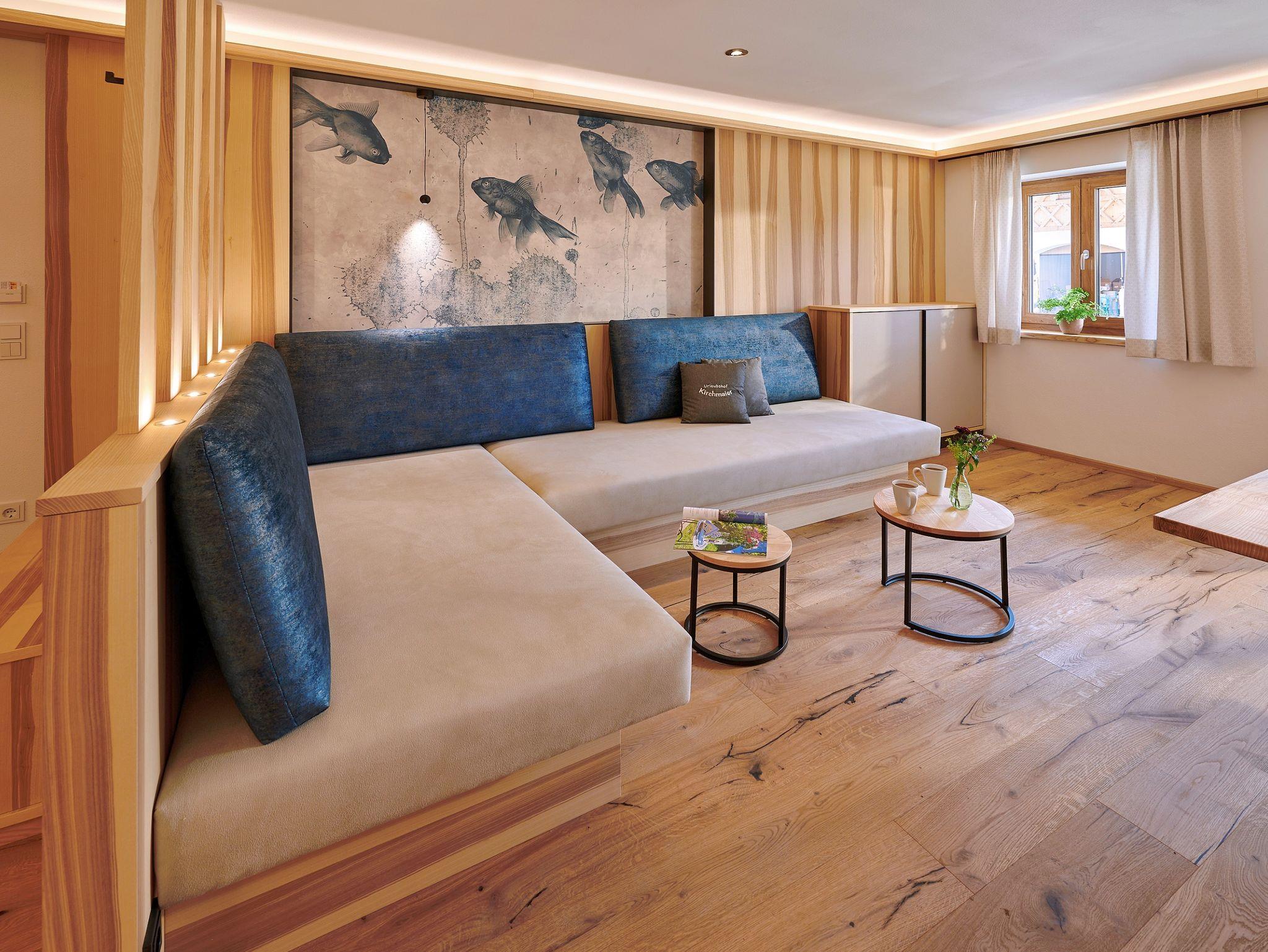 Erholung und Entspannung findest du in unserer luxuriösen 5-Sterne-Ferienwohnung Tiroler Ache im Erdgeschoss des Urlaubshofes Kirchmaier. Sofort nach deiner Ankunft wirst du dich in deinem Urlaubszuhause wohlfühlen. Das helle und offene Flair mit viel Echtholzausstattung wird durch die harmonisch aufeinander abgestimmte Inneneinrichtung sowie das luxuriöse Badezimmer mit Regendusche abgerundet. Auf der großzügigen Westterrasse mit Seeblick kannst du die Seele baumeln lassen, die traumhafte Natur rund um unseren Ferienhof genießen und bei einem unvergesslichen Sonnenuntergang den Urlaubstag ausklingen lassen.