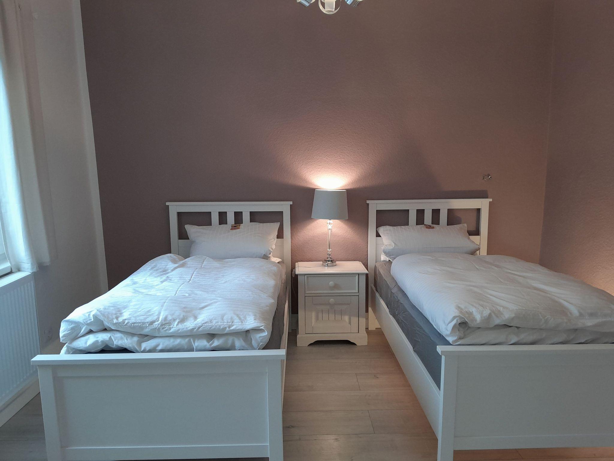 Das Hauptschlafzimmer, mit einem Doppelbett von einer größe von 180x200 cm , hat direkte Anbindung an das Badezimmer. Das zweite Schlafzimmer hat zwei Einzelbetten von einer Größe von 100x200 cm . Der Weg von diesem Zimmer zum Badezimmer führt durch das Hauptschlafzimmer. Bedingt durch diese Besonderheit, sind die Ferienwohnungen für Familien oder Personen geeignet, die sich gut kennen. Beide Schlafzimmer haben eine gemütliche Sitzecke mit TV-Gerät.