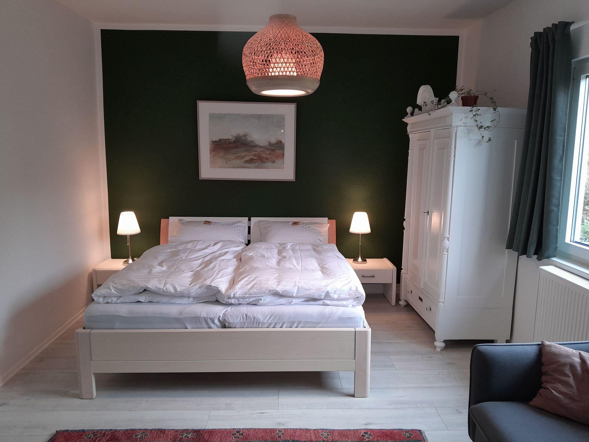 Das Hauptschlafzimmer, mit einem Doppelbett, hat direkte Anbindung an das Badezimmer. Das zweite Schlafzimmer hat zwei Einzelbetten. Der Weg von diesem Zimmer zum Badezimmer führt durch das Hauptschlafzimmer. Bedingt durch diese Besonderheit, sind die Ferienwohnungen für Familien oder Personen geeignet, die sich gut kennen. Eines der Schlafzimmer hat eine gemütliche Sitzecke mit TV-Gerät.