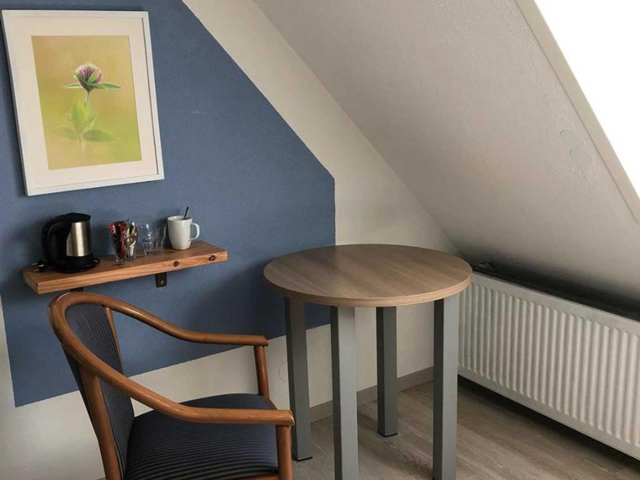Das Einzelzimmer in der Pension Haus Hohensee befindet sich in der 2. Etage im Dachgeschoss. Ein Waschbecken ist im Zimmer. Eine Etage tiefer befindet sich ein Badezimmer mit Dusche und WC zur alleinigen Nutzung.