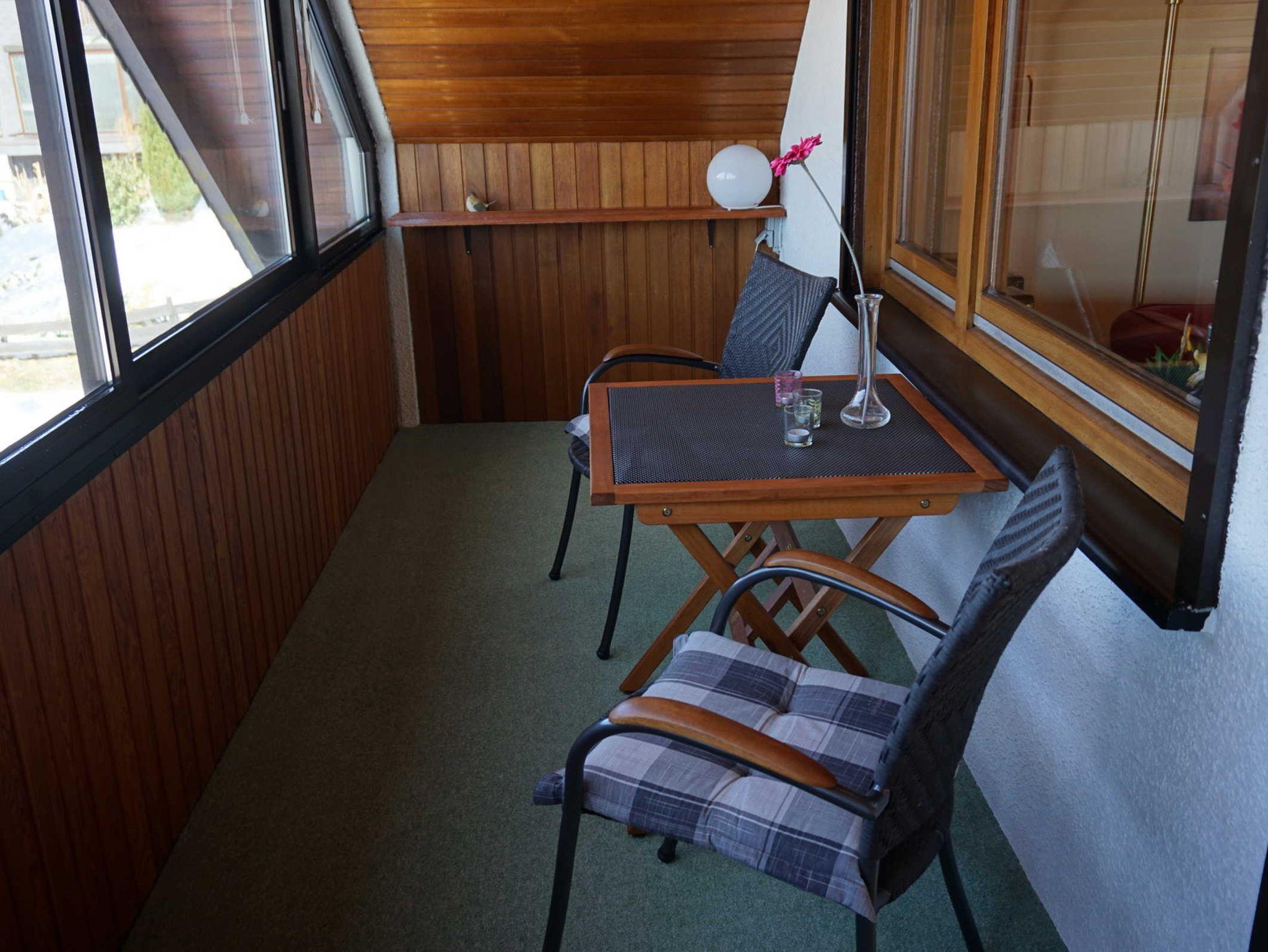 Der verglaste Balkon lädt zum Verweilen, bei Wind und Wetter, ein.