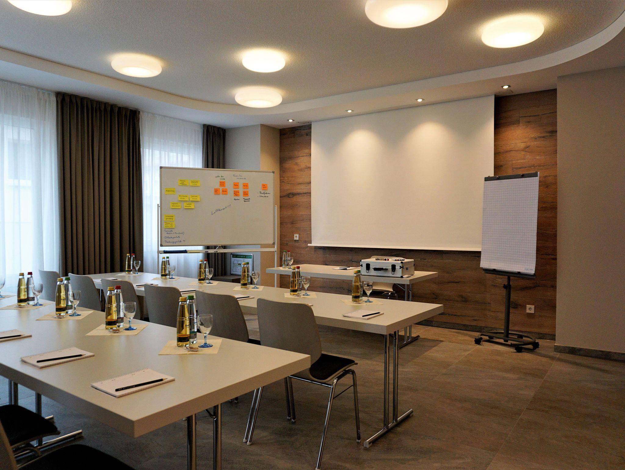 Zusätzlich steht ein Tagungsraum zur Verfügung, der bei Bedarf gebucht werden kann z.B. für Workshops, Meetings oder kleine Veranstaltungen.