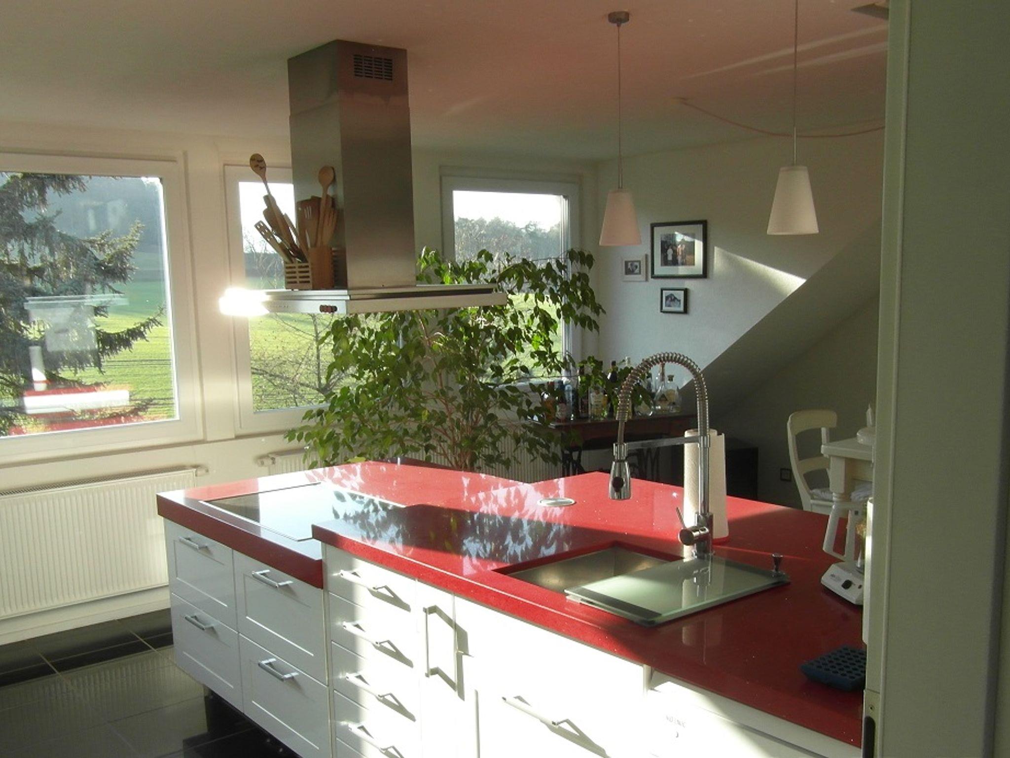 Die ruhig gelegene Ferienwohnung ist modern, komfortabel und großzügig geschnitten. Die ca. 75 m² große Wohnung verfügt über einen Loggia-Balkon mit Grillmöglichkeit, Schlafzimmer mit TV, Wohnzimmer mit TV/Esszimmer/Küche mit Spülmaschine, Mikrowelle, Kaffeemaschine Vollausstattung, in offener Bauform. Bad mit Dusche und Whirlpoolwanne. Der vorhandene Kaminofen kann benutzt werden, das Kaminholz wird gegen Berechnung zur Verfügung gestellt. Parkplatz und Unterstellmöglichkeiten für Fahrräder etc. sind vorhanden. Saunanutzung auf Anfrage möglich.