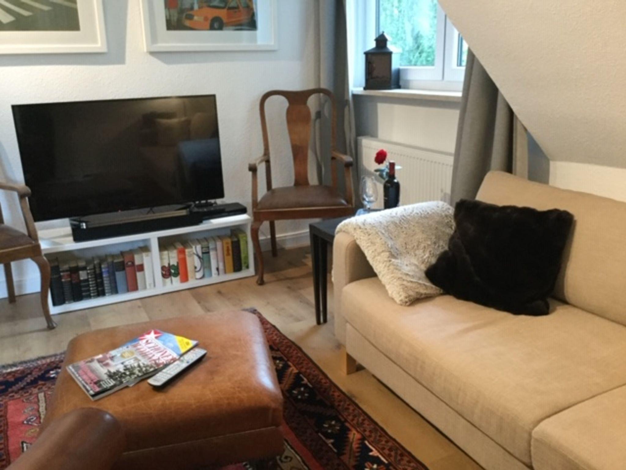 Wohnbereich: ausgestattet mit einem großen modernen LED - Smart - TV, Sound - Bar, Digital - Radio und CD - Anlage, HD - DVD -Player, Bibliotheksbereich mit einer CD- und Buchauswahl.