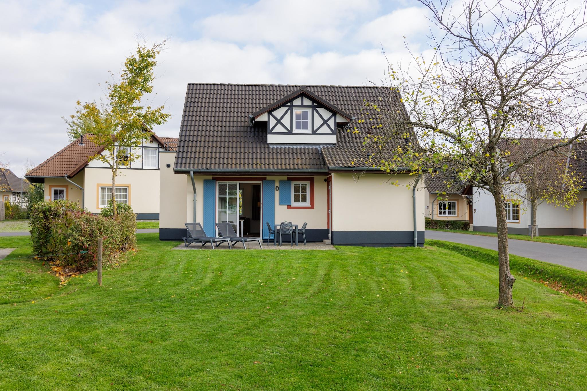 Disse fritliggende villaer, som blev renoveret i 2017, ligger på Ferienresort Cochem. Designet er moderne, komfortabelt og hyggeligt. Du har en rummelig stue og et åbent køkken udstyret med forskellige moderne apparater til din rådighed. Der er også et soveværelse med to enkeltsenge (skubbet sammen til en dobbeltseng) og eget badeværelse nedenunder. Der er to enkeltværelser ovenpå. Der er et tv i et af soveværelserne. Det andet badeværelse er også ovenpå. Alle senge er boxmadras. Et opbevaringsrum med vaskemaskine og tørretumbler fuldender billedet. Der er en have med terrasse og havemøbler, og der er en parkeringsplads ved villaen til én bil. 2027: Swimmingpoolen er lukket fra 11.01 til 17.01.2027 på grund af renoveringsarbejde.