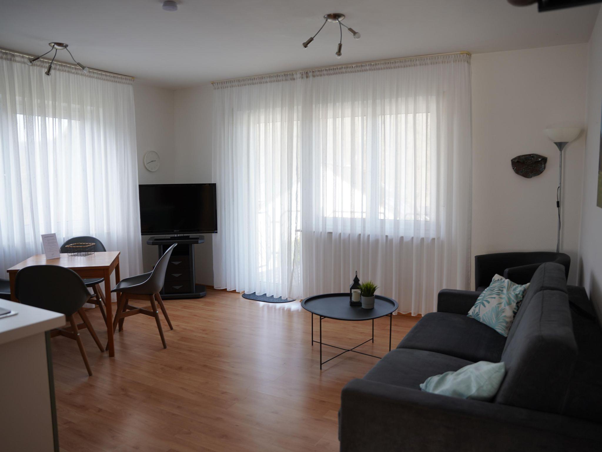 Wohnung mit 1 sep. Schlafzimmer, Wohnzimmer , Küche mit Spülmaschine, Dusche/WC, WC, Balkon, TV