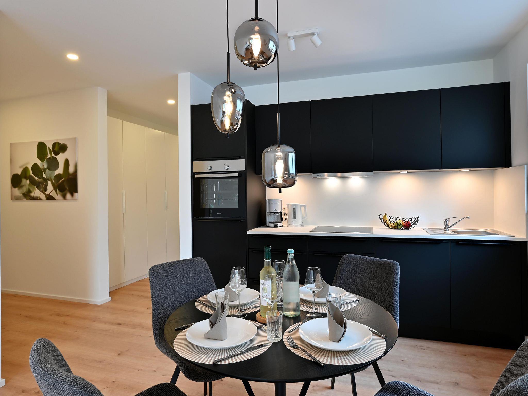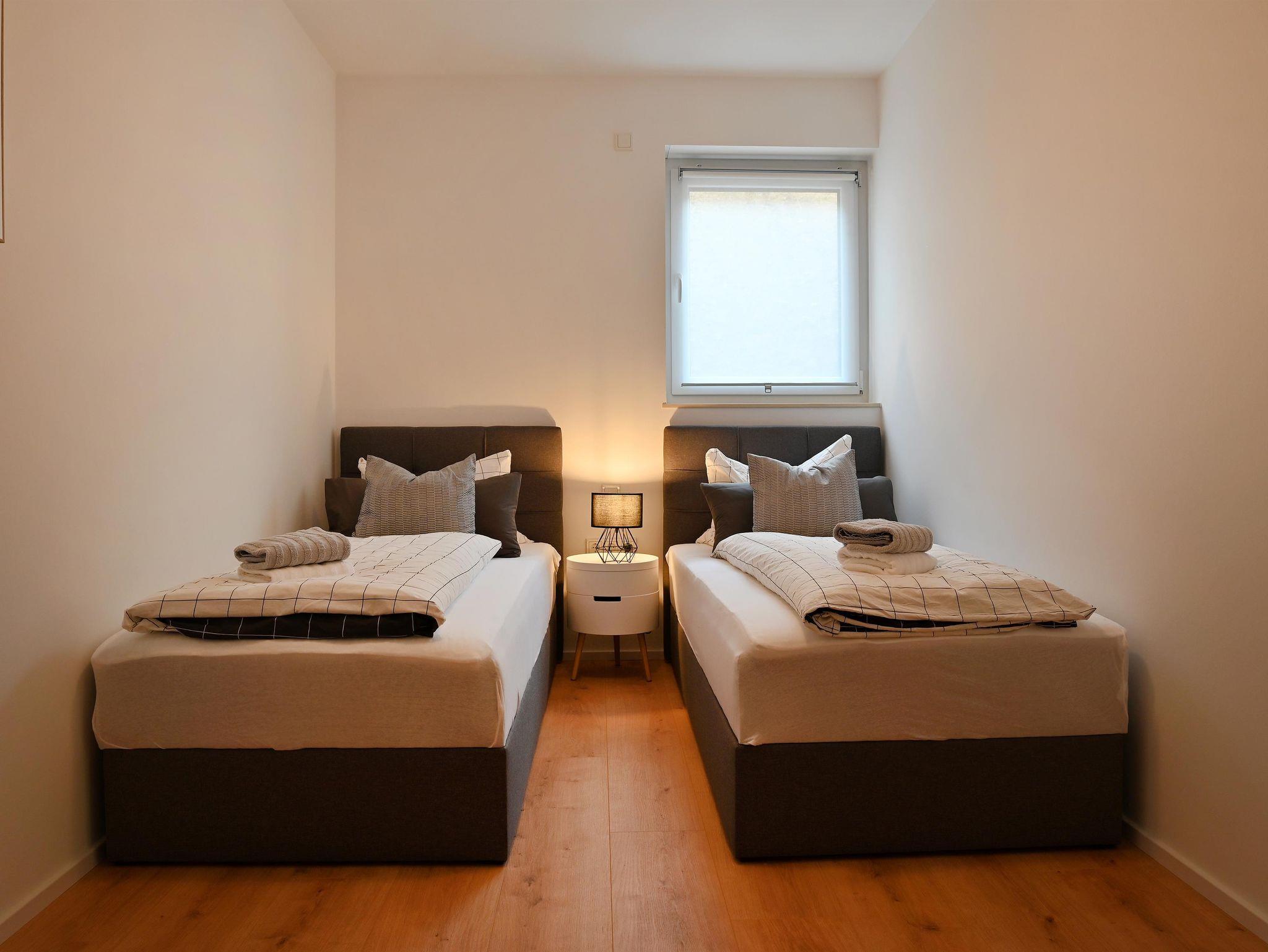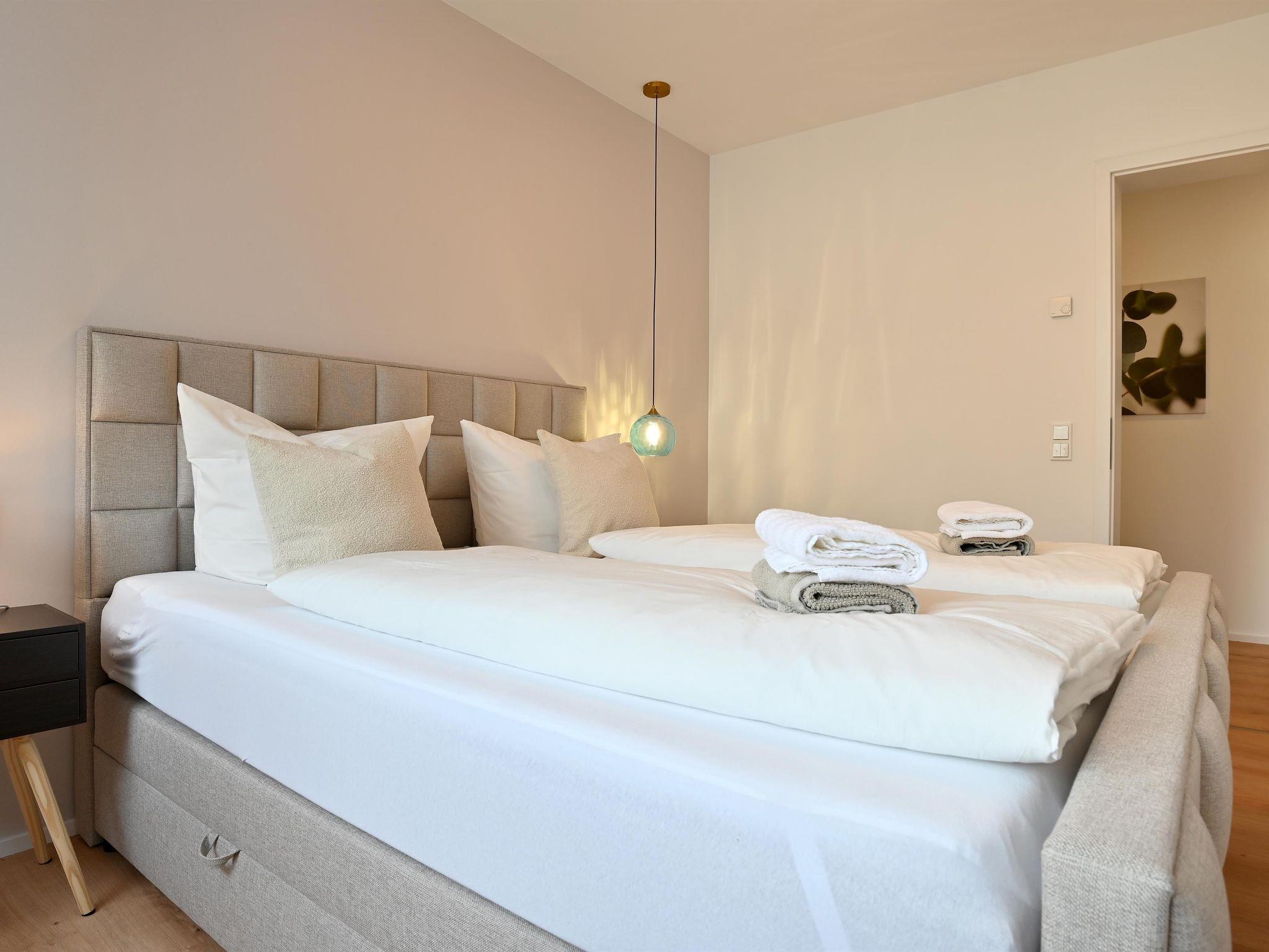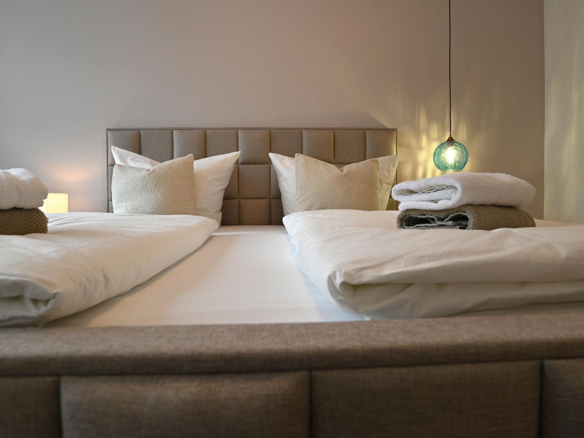 Das Apartment mit Terrasse und Bergblick verfügt über 2 Schlafzimmer mit 3 Boxspringbetten, ein Wohnzimmer, einen Flachbild-TV mit Amazon Prime und Netflix, eine voll ausgestattete Küche mit Geschirrspüler und Backofen sowie 1 Bad mit einer ebenerdigen Dusche und Handtuchwärmer. Die Handtücher und die Bettwäsche werden im Apartment gestellt.