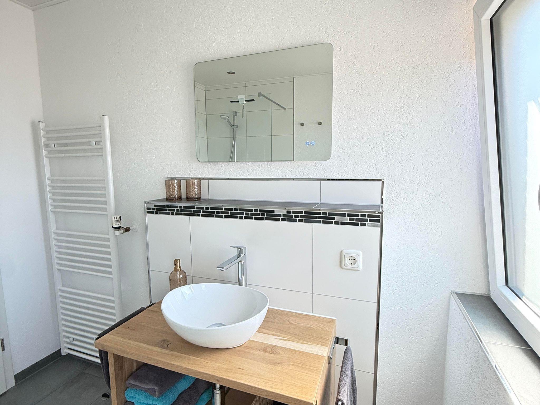 1 Schlafzimmer mit Zustellbett (ausziehbarer Sessel), 1 Wohn-Schlafraum (Federkern-Ausziehsofa), LED-SAT-TV, Radio, Wlan, Küche, DU/WC, Balkon