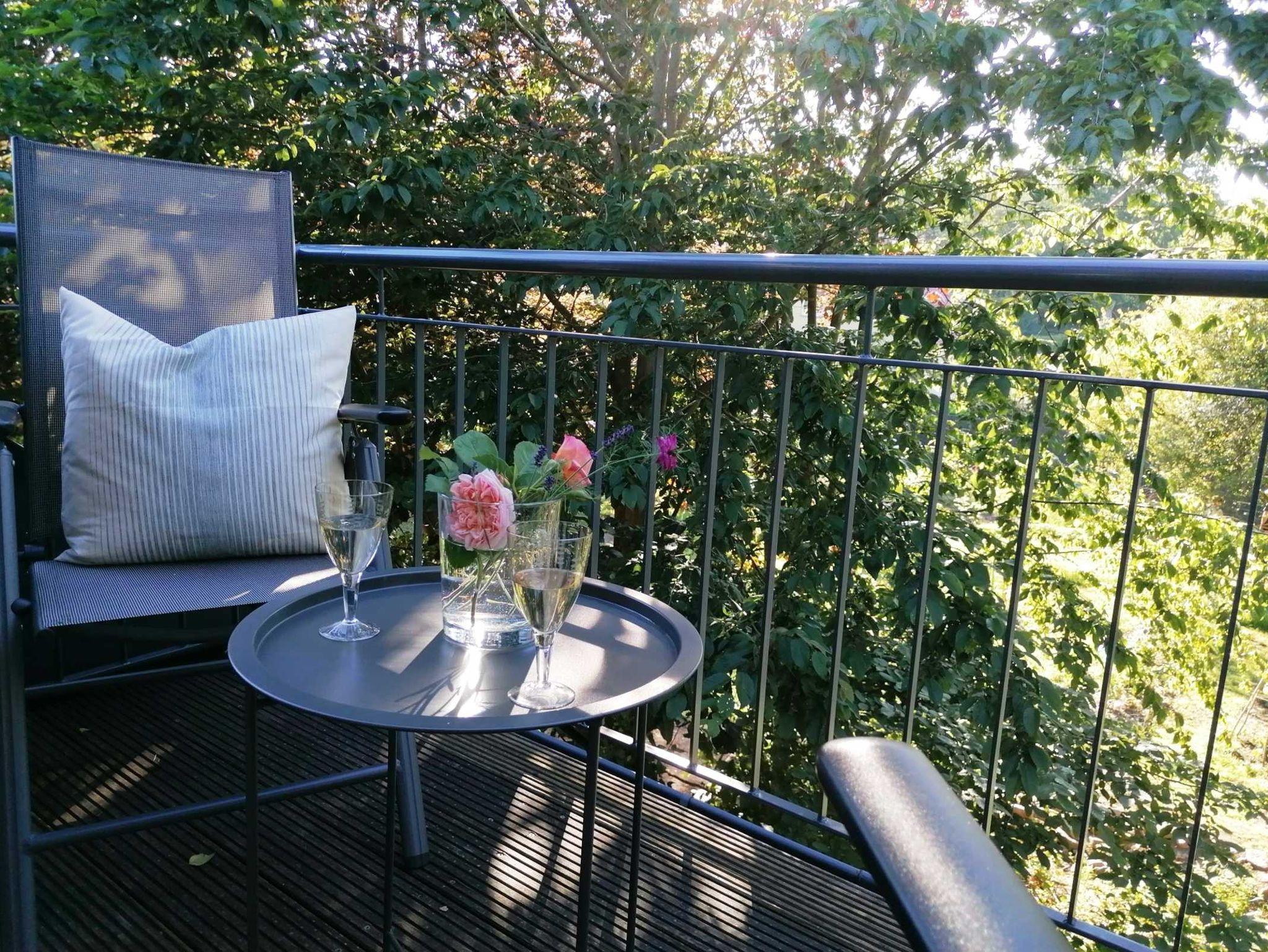 Bei schönem Wetter können sie neben dem Balkon die Sitzecke vor dem Haus nutzen.