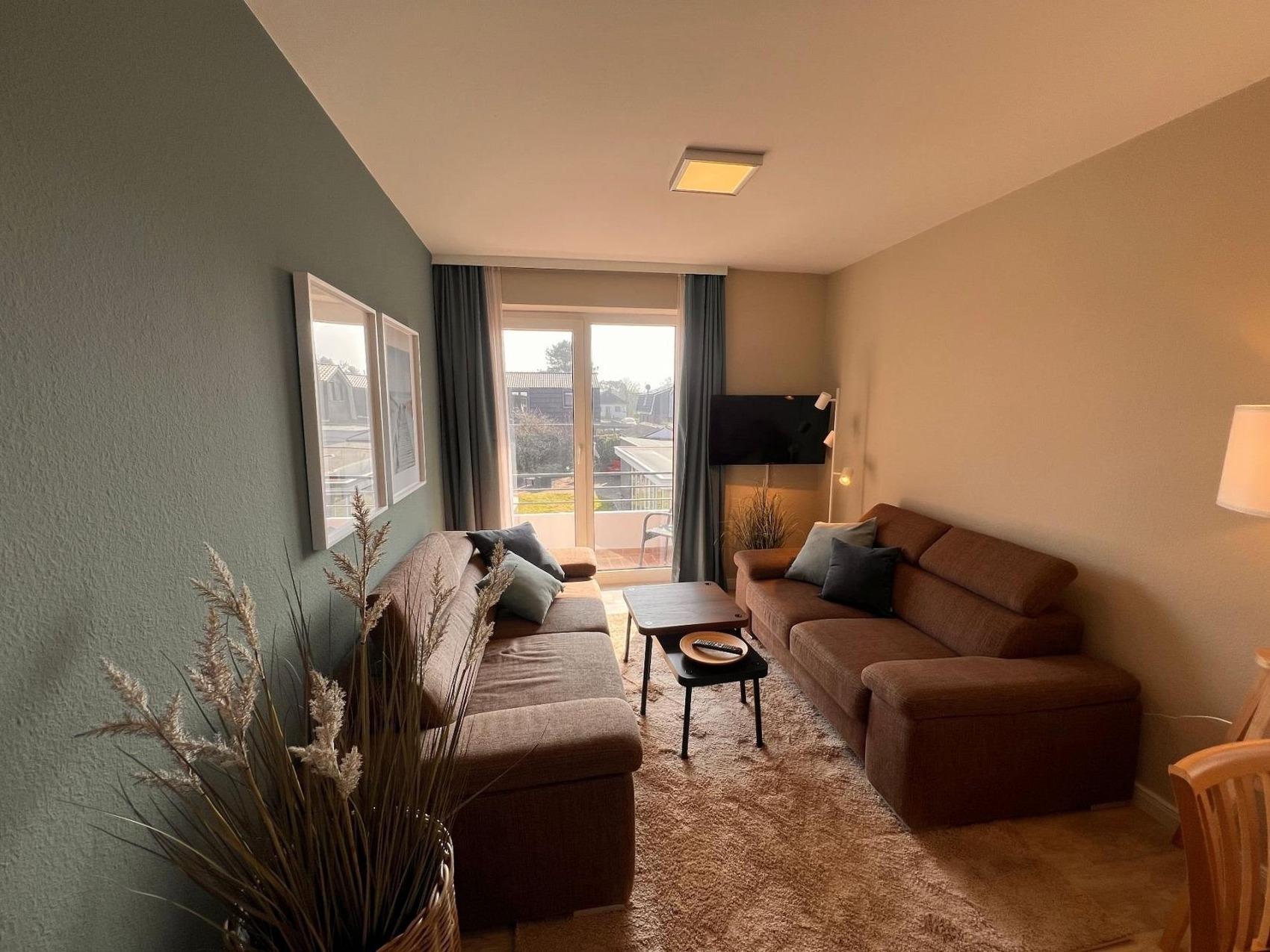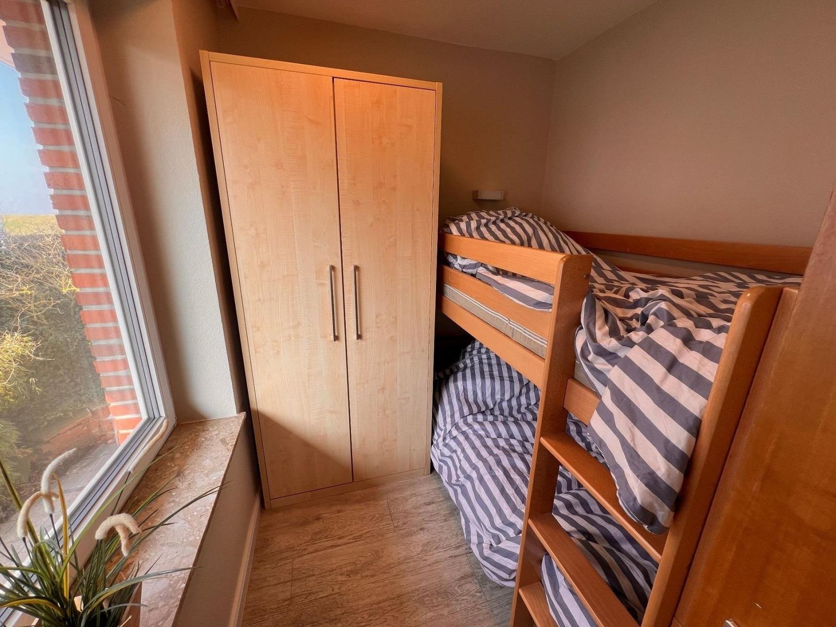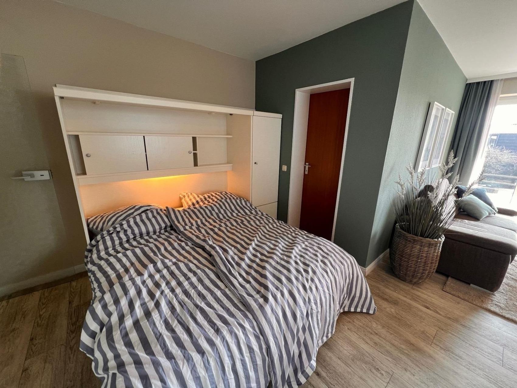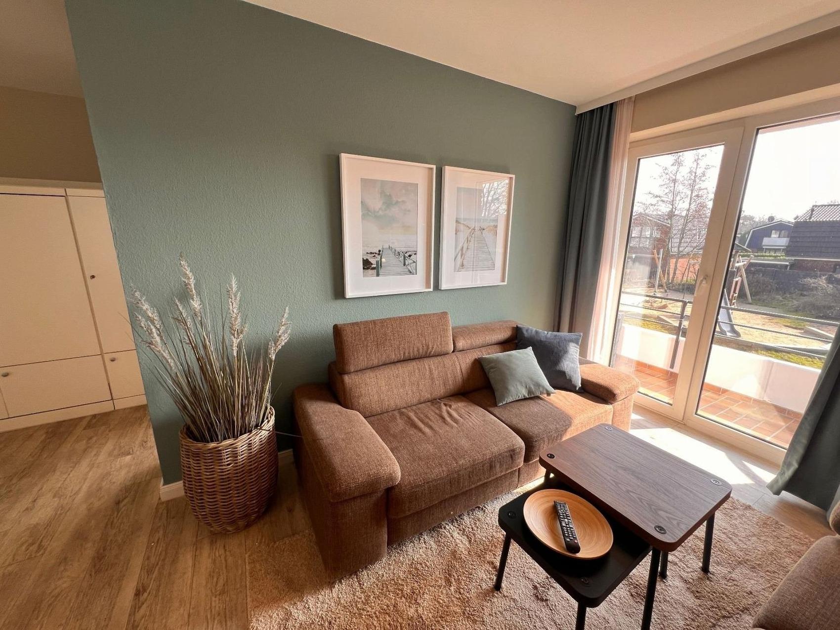 Die Wohnung verfügt über ein separates Elternschlafzimmer mit Doppelbett, ein Kinderzimmer mit Etagenbett für 2 Kinder sowie ein ausklappbares Doppelbett im Wohnzimmer. Der Südbalkon ist perfekt für Sonnenanbeter und ermöglicht gleichzeitig den Blick auf den Spielplatz ideal, um die Kinder entspannt im Auge zu behalten.