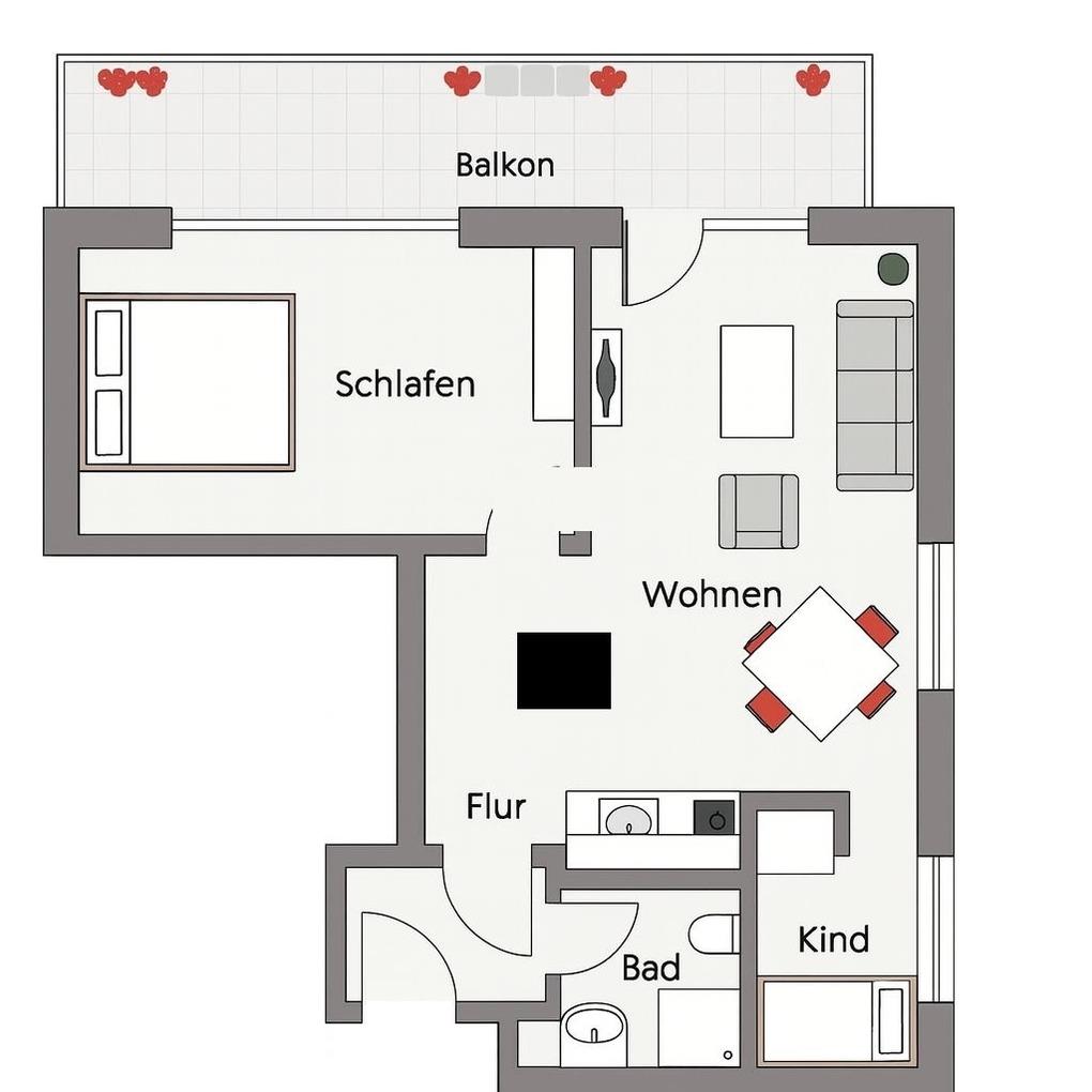 3-Zimmer-Wohnung (ca. 50 qm) mit zwei Schlafzimmern