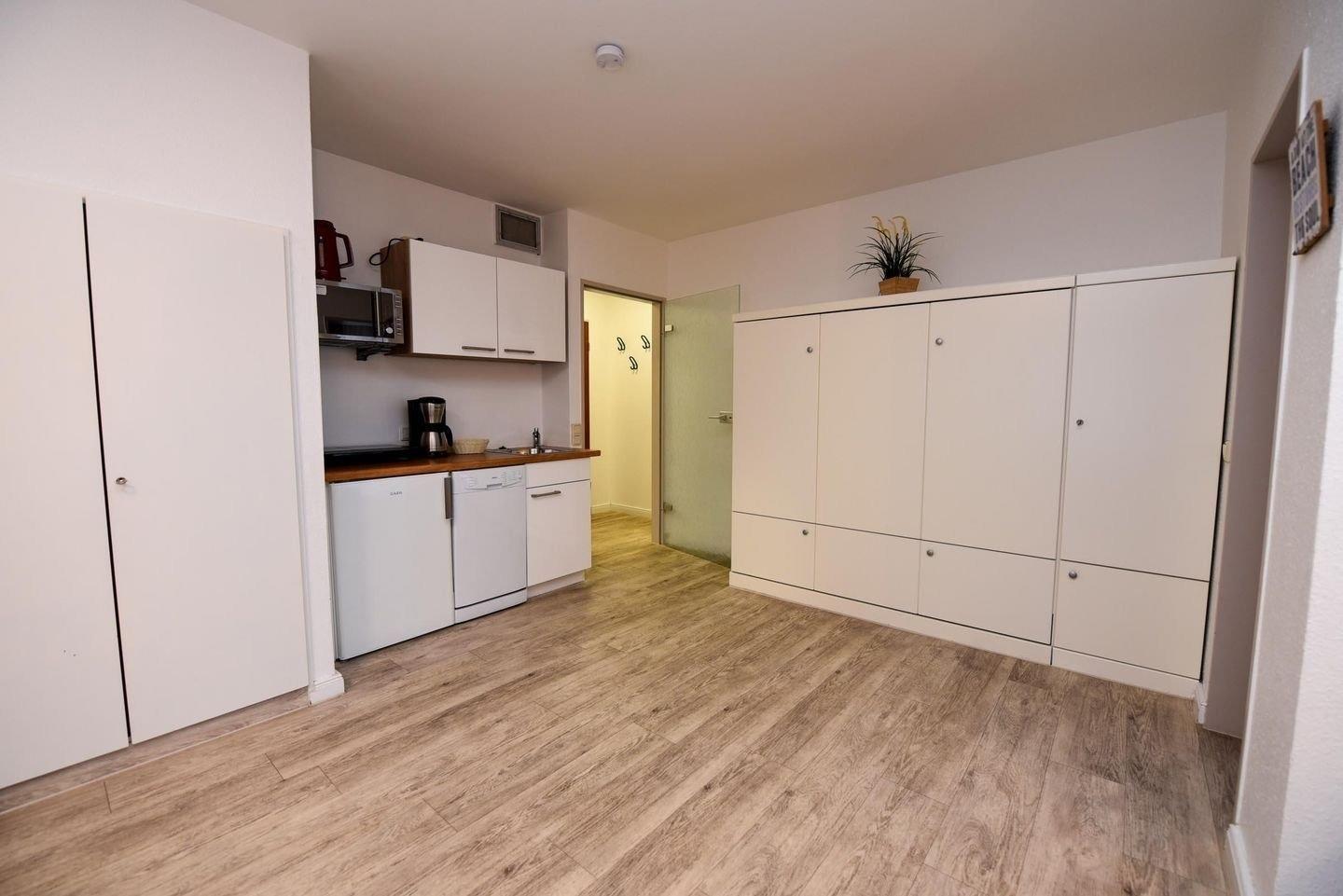 3-Zimmer Appartement im Haus "Nige Wark", bestehend aus einem Kinderzimmer mit Etagenbett, einem Schlafzimmer mit Doppelbett und einem Wohnzimmer in welchen sich zusätzlich noch ein Schrankbett befindet (2x90x200). Im Wohnraum befinden sich zudem in der Fernsehecke 2 gemütliche Zweisitzer, ein Flat- TV. Die im Wohnraum integrierte Küchenzeile bietet u.a. Spülmaschine, Mikrowelle und Kühlschrank mit Gefrierfach. Am ausziehbare Esstisch gibt es genügend Platz für die ganze Familie. Badezimmer mit tiefer Dusche und WC. Größe ca. 50qm. Die Wohnung liegt im Hochparterre und hat einen großen Südbalkon zum Garten.