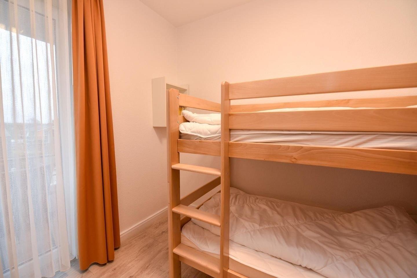 2-Zimmer Appartement im Haus "Nige Wark". Im Wohnzimmer befindet sich ein gemütliches Zweisitzer-Sofa, ein Sessel und ein Flat-TV. Die integrierte Küchenzeile mit Spülmaschine, Mikrowelle und Kühlschrank mit Gefrierfach ist komplett ausgestattet und der ausziehbare Esstisch bietet genügend Platz für alle. Im Wohn-/Schlafraum befindet sich zusätzlich noch ein ein Schrankbett (2x90x200). Im Schlaf-/Kinderzimmer steht ein Etagenbett. Das Badezimmer ist mit einer Dusche und WC ausgestattet. Die ca. 35 qm große Wohnung liegt im 1. OG und verfügt zudem auch über einen Balkon zum Garten