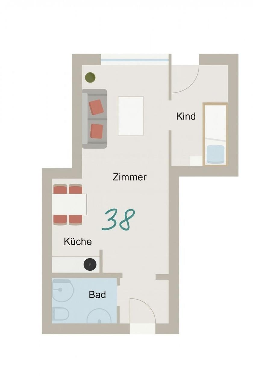 2-Zimmer-Wohnung (ca. 35 qm) mit einem Schlafzimmer