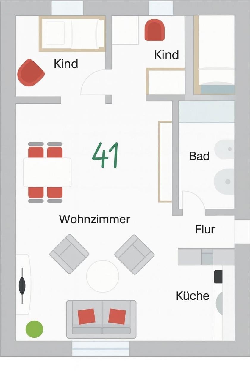 3-Zimmer-Wohnung (ca. 50 qm) mit 2 Schlafzimmern