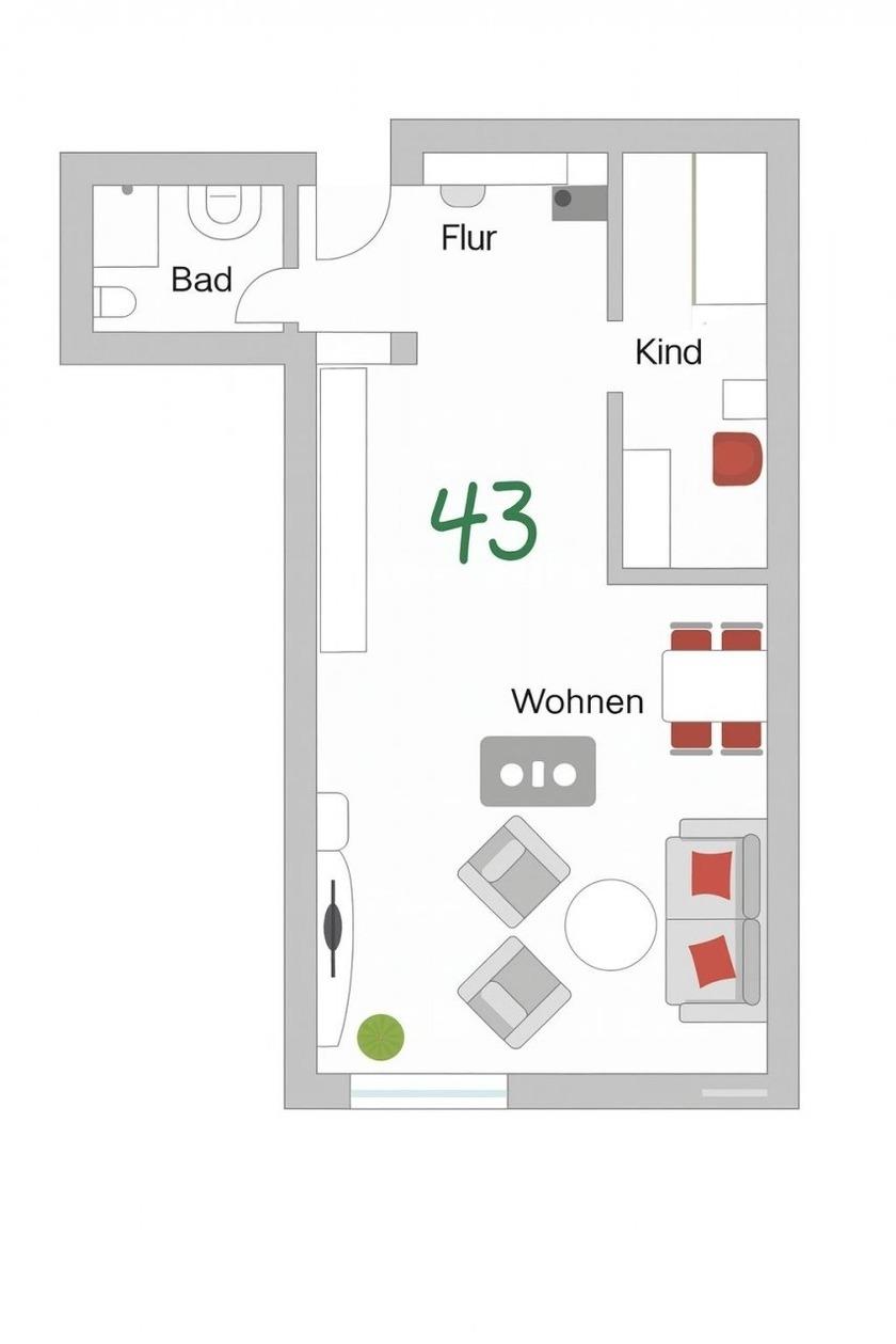 2-Zimmer-Wohnung (ca. 41 qm) mit einem Schlafzimmer