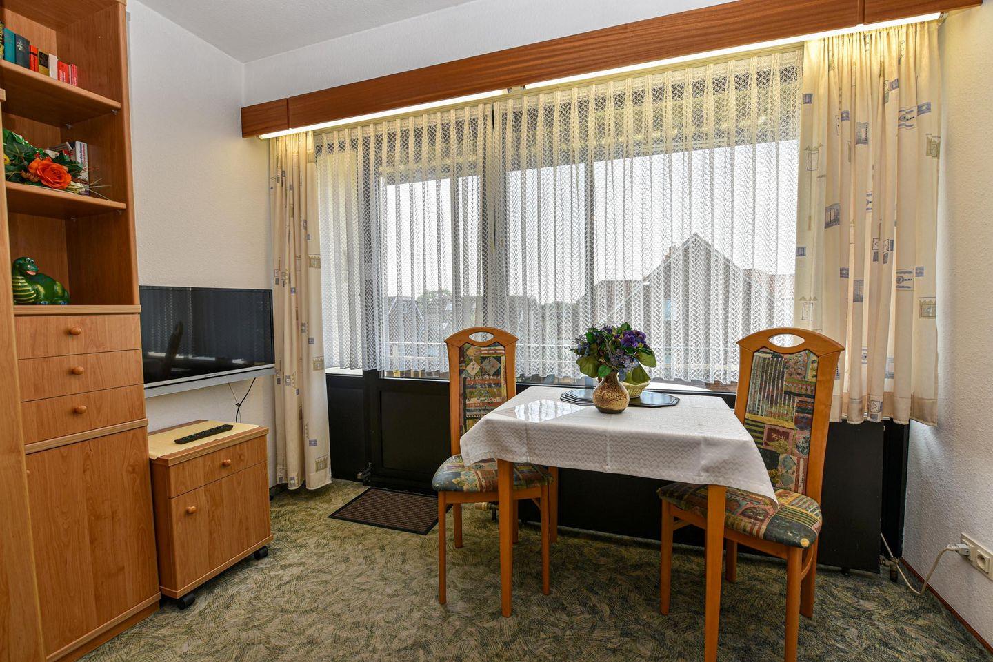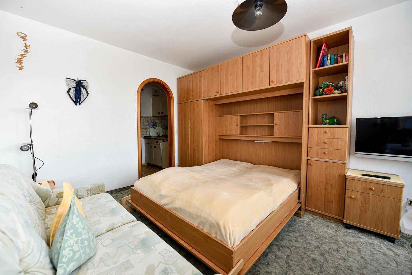 Das für 2 Personen eingerichtete 1-Zimmer Appartement im 3. OG im Haus JAN AM STRAND hat einen möblierten und sonnigen Südbalkon. Es gibt eine integrierte Küchennische. Der Wohnbereich ist mit einem Doppelschrankbett mit zwei Einzelmatratzen, einem Sofa und einem Esstisch mit zwei Stühlen eingerichtet. Kabel-TV ist vorhanden. Zu der Wohnung gehört ein Tiefgaragenstellplatz mit einer Einstellhöhe von 190 cm.