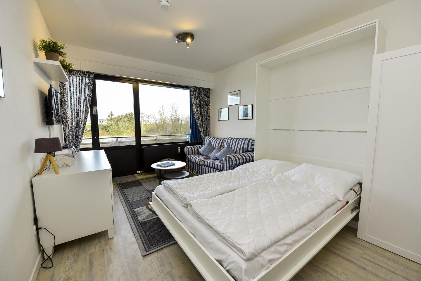 Dieses schöne 1-Raum-Appartement liegt im 1. OG des Hauses "Jan am Strand". Im Wohnraum befinden sich ein Essplatz, eine gemütliche Couch, ein TV, sowie ein solides Schrankbett (140cm x 190cm) . Die kleine Küchennische ist separat, das Badezimmer ist mit einer Dusche ausgestattet. Zur Wohnung, die Sie bequem mit dem Fahrstuhl erreichen, gehört außerdem ein Tiefgaragen-Stellplatz mit 149cm Höhe. In der Anlage finden Sie eine Waschmaschine, die Sie gegen Gebühr nutzen können. W-LAN ist für Sie inklusive. Der Hauptzugang zum Döser Sandstrand befindet sich in Sichtweite.