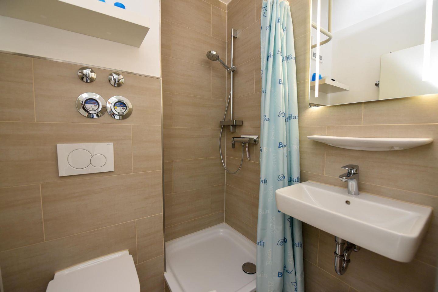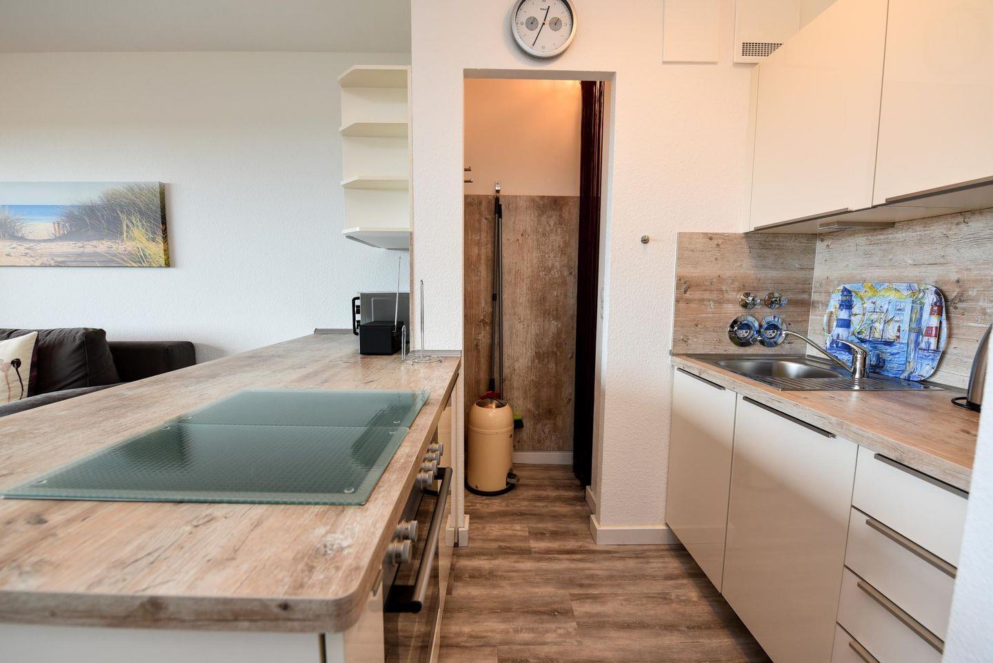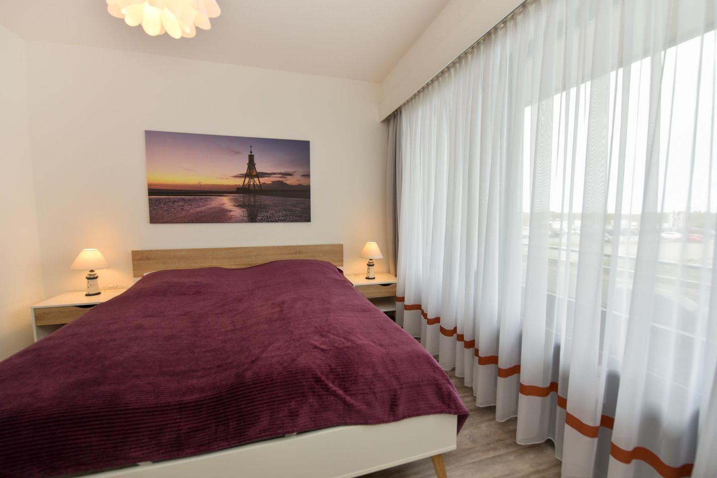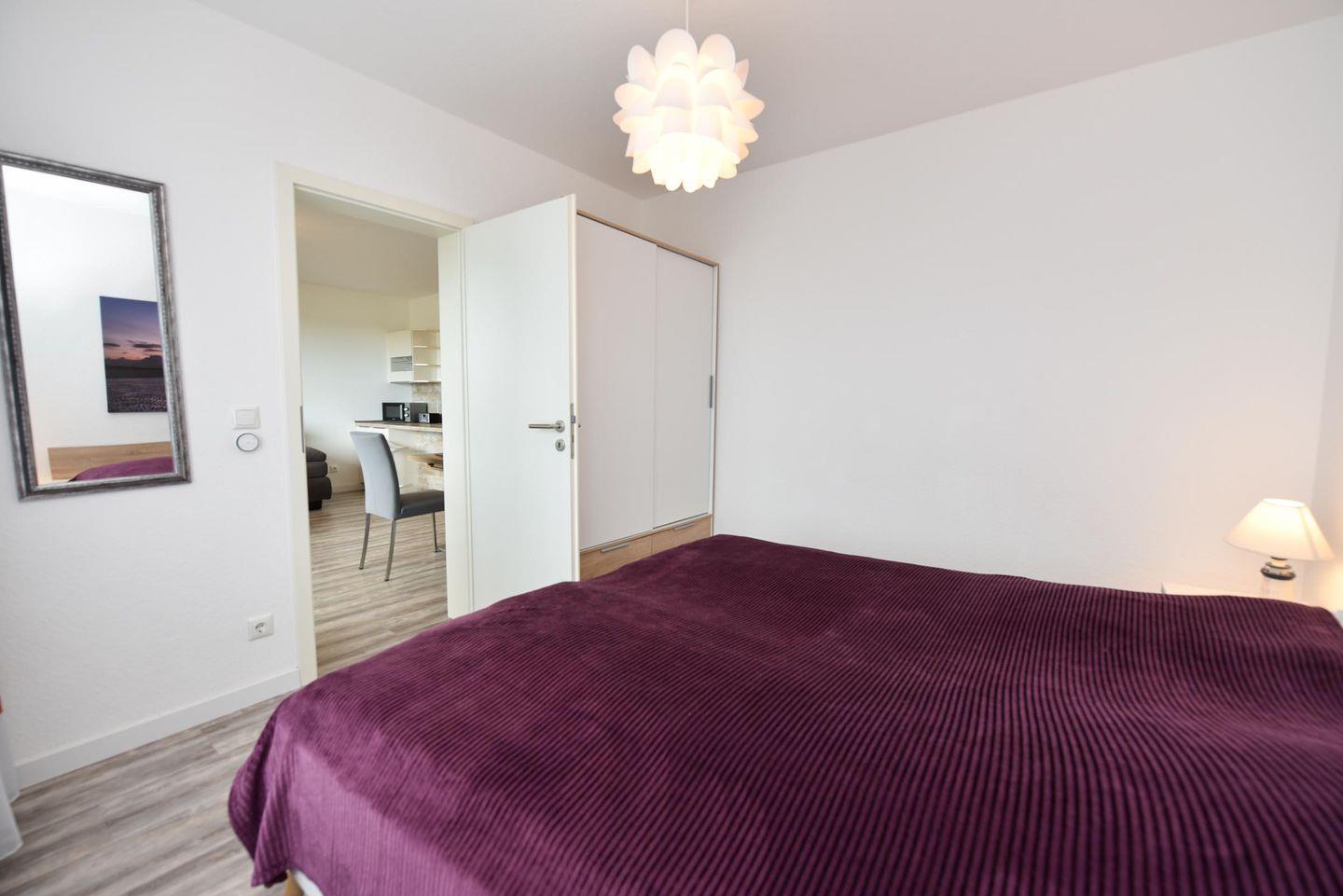 Freundliches 2-Zimmer Appartement im 1. OG mit großem Balkon und eingeschränkter Sicht auf den Weltschifffahrtweg. In 2018 wurde dieses freundliche Appartement grundsaniert und verfügt u.a. über einen allergikerfreundlichen Vinylboden. Im Wohn-/ Essbereich befindet sich eine integrierte und voll ausgestattete Küche, sowie ein Schlafsofa (140cm x 200cm), ein Sessel und eine Eckbank mit einem Stuhl. Das Schlafzimmer ist mit einem Doppelbett und einen weiteren TV -Gerät ausgestattet. Das Duschbad hat eine bodentiefe Dusche. Der kostenlose Tiefgaragenstellplatz hat eine Einstellhöhe von 149 cm, Der Eigentümer stellt seinen Gästen aber auch einen Parkausweis für den städtischen Parkplatz vor dem Haus zur Verfügung.