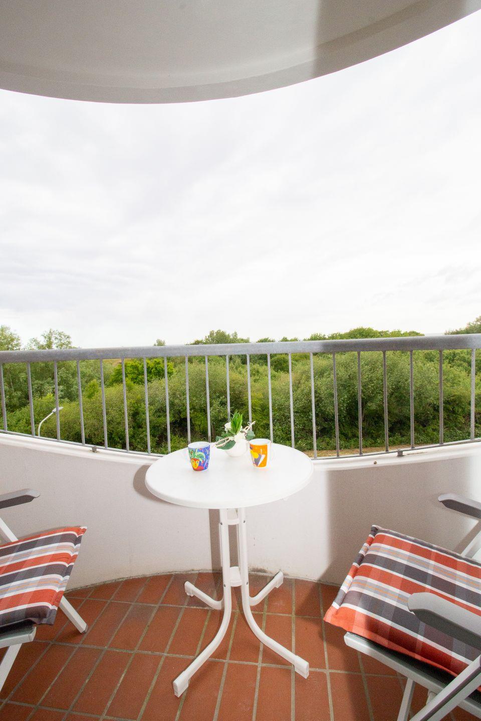 Auf dem Balkon der Ferienwohnung erwartet Sie die wunderbare Aussicht aufs Meer. Die Balkonmöbel laden ein, zu jeder Zeit die frische Nordseeluft zu genießen. Perfekt, um den Urlaubstag mit einem Frühstück unter freiem Himmel zu beginnen oder am Abend auf dem Balkon mit einem Glas Wein beim Sonnenuntergang über der Nordsee zu verweilen. Genießen Sie die vorbeifahrenden Container- und Kreuzfahrtschiffe in ihrer imposanten Gestalt, verwandeln Sie Ihr Handy in einen maritimen Schifffahrtsguide und erfahren alles über die gesichteten Schiffe. In der Wohnung liegt ein Fernglas, um die Schiffe noch näher heran zu holen.