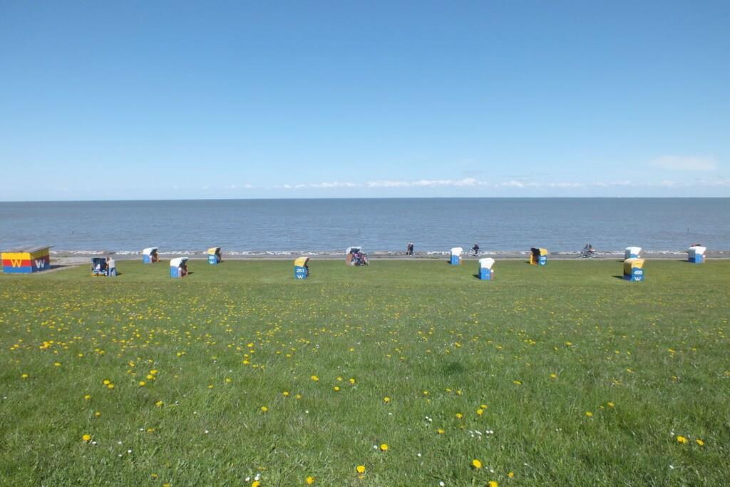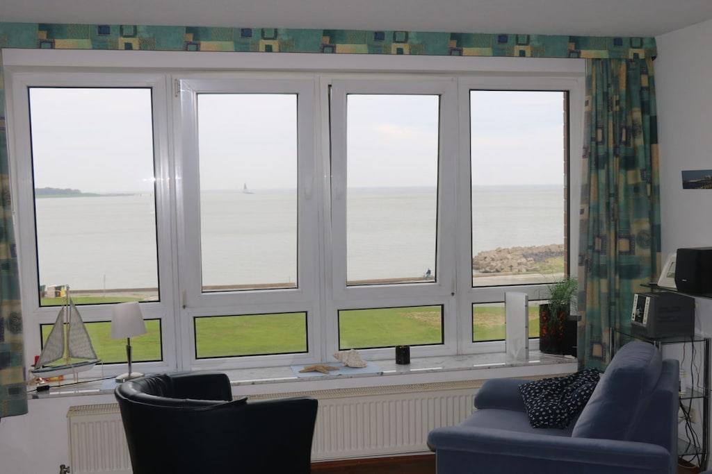 Lejlighed 21 i Seeterrassen-bygningen fortryller med direkte udsigt over Elbens udmunding, en af verdens største skibsruter. Udover søudsigten har du fri udsigt over Grimmershörn-bugten og den grønne strand med strandstole. Dag og nat kan du se skibene sejle forbi. Lejligheden opdateres regelmæssigt, er nyindrettet, og badeværelset er blevet fuldstændig renoveret. Slap af i den lyse og indbydende stue/spisestue med et dejligt sofahjørne og LCD-tv, og tilbered måltider i det elegante, åbne køkken med opvaskemaskine, som du kan servere ved spisebordet. Soveværelset har en dobbeltseng. Et behageligt brusebad fuldender lejligheden. Der er gratis internetadgang.