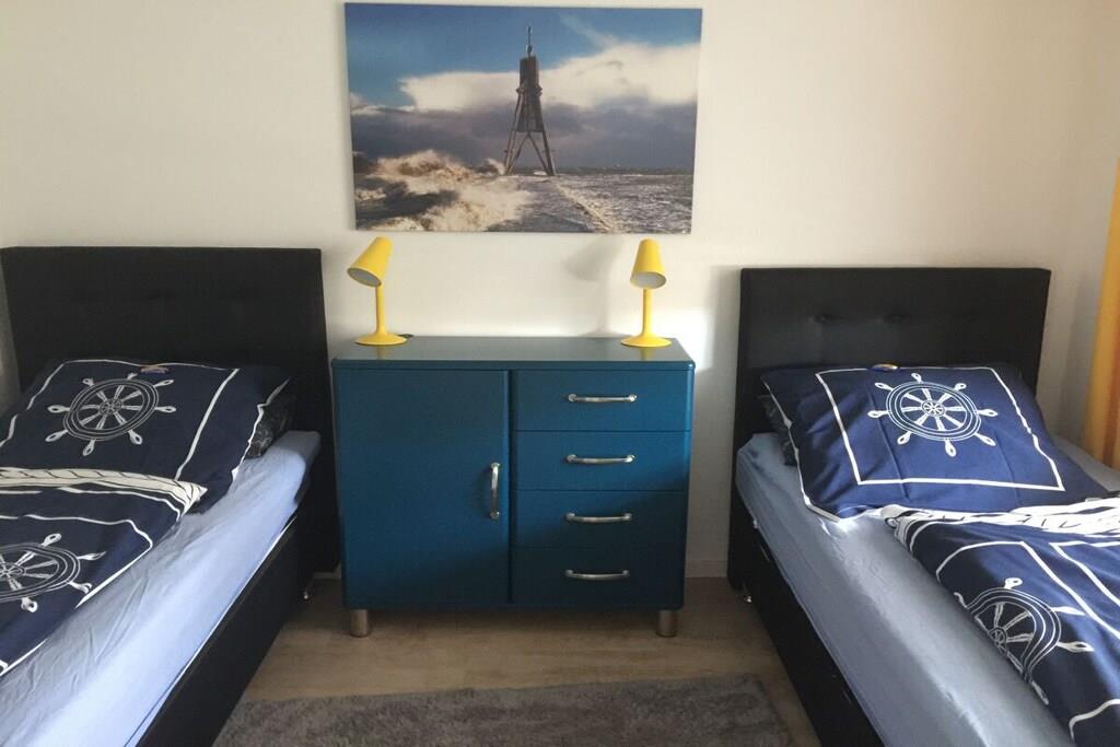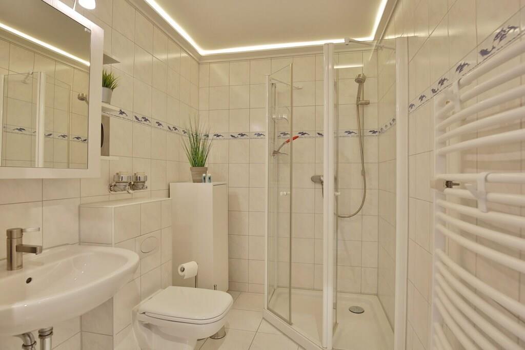 Vores smukke ferielejlighed ligger på 2. sal med udsigt over søen i Grimmershörn-huset, i første række lige bag diget. Udsigten over Kugelbake og over diget, til Verdensskibsruten, lader intet tilbage at ønske. Cuxhaven byder på behagelige gåture og talrige udflugtsmuligheder. Sandstranden, Kugelbake og spahaverne ligger kun få minutters gang væk. Mange restauranter i umiddelbar nærhed tilbyder også tid til at slappe af og nyde et måltid, mens butikker, læger og mange udflugtsmål er let tilgængelige på cykel eller til fods. En balkon med siddepladser inviterer dig til at blive hængende og nyde udsigten. En strandstol i første række er reserveret til dig mod et gebyr på EURO3,00. Ferielejligheden har sin egen parkeringsplads.