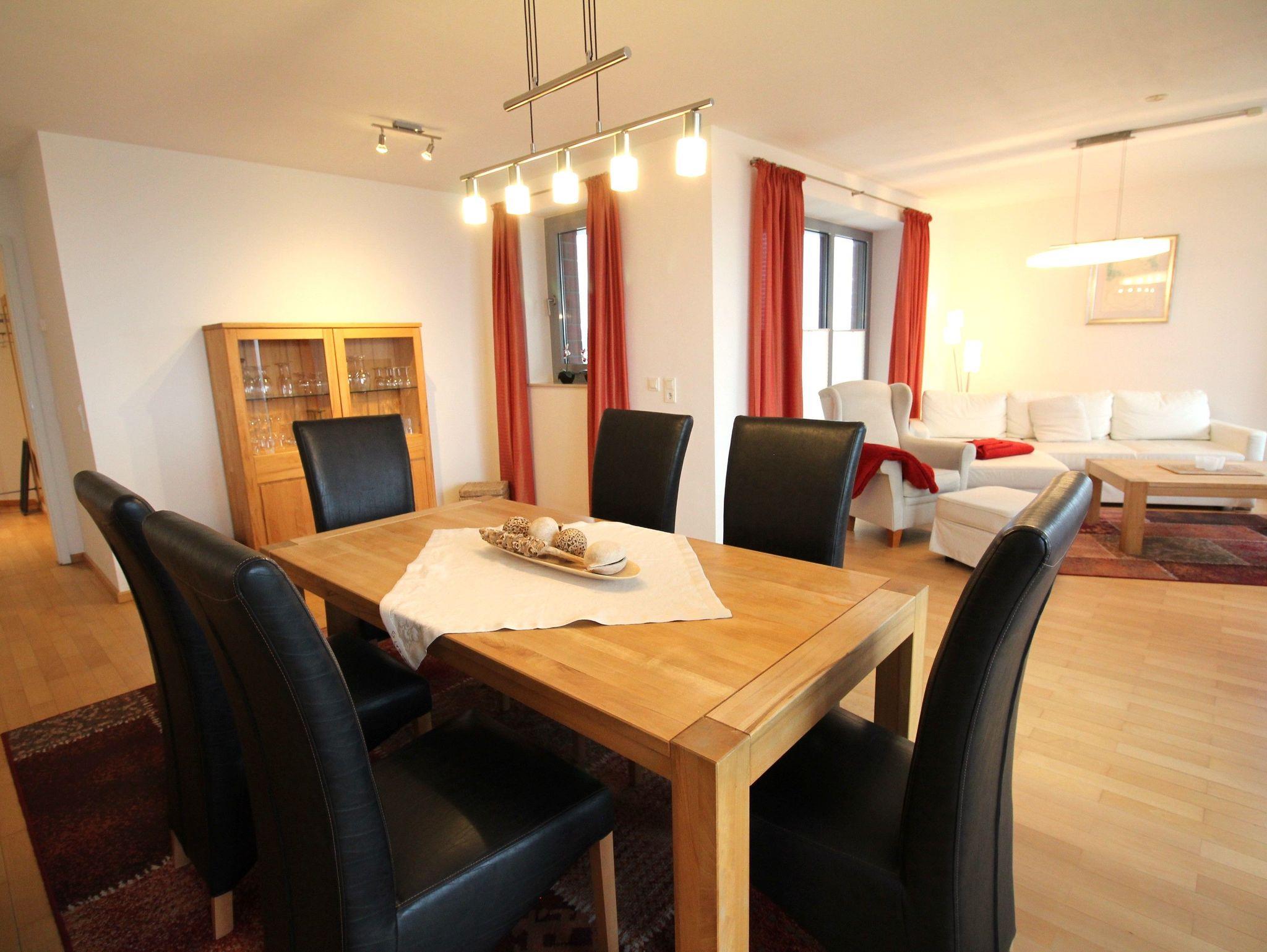 In der gesamten Wohnung sorgen wohnliche Echtholzböden für ein angenehmes Ambiente. Zwei möblierte Balkone mit Nord- und Südausrichtung erweitern den Wohnraum, kostenfreies WLAN steht zur Verfügung. Zum Appartement gehören ein Stellplatz in der Tiefgarage sowie ein zusätzlicher Außenstellplatz. Fahrräder können sowohl in einem abschließbaren Kellerraum als auch in einem offenen Fahrradunterstand vor dem Haus abgestellt werden. Waschmaschine und Wäschetrockner stehen gegen Gebühr zur Nutzung bereit.