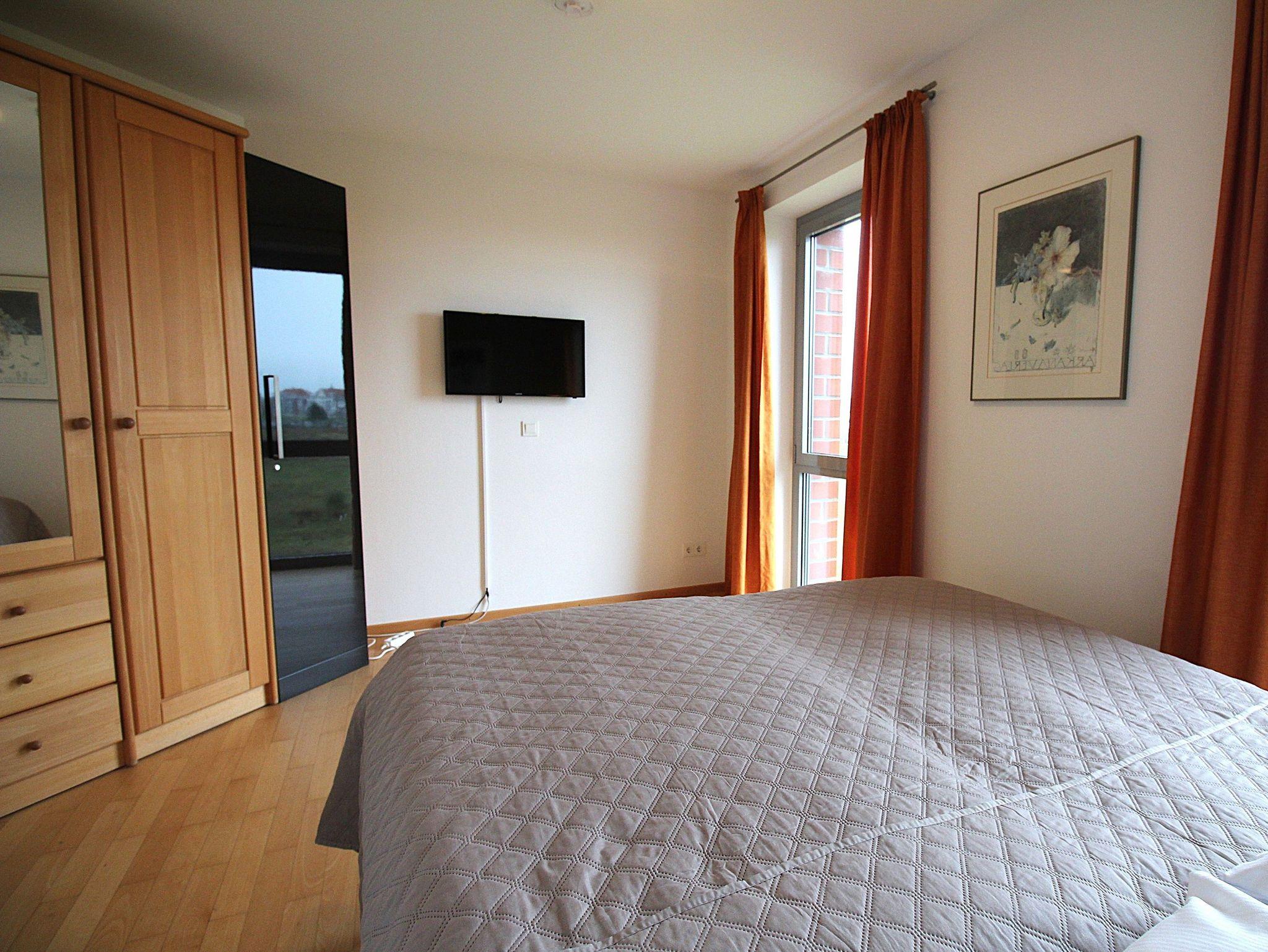 Der helle Wohnbereich mit moderner Couchlandschaft und Essplatz bildet das Herzstück der Wohnung. Die hochwertige, vollständig ausgestattete Küche lässt keine Wünsche offen. Große Fensterfronten sorgen für viel Tageslicht und eröffnen einen weiten Blick in Richtung Meer, im Wohnbereich steht zudem ein großer LCD-Flachbildschirm mit Kabel-TV zur Verfügung.