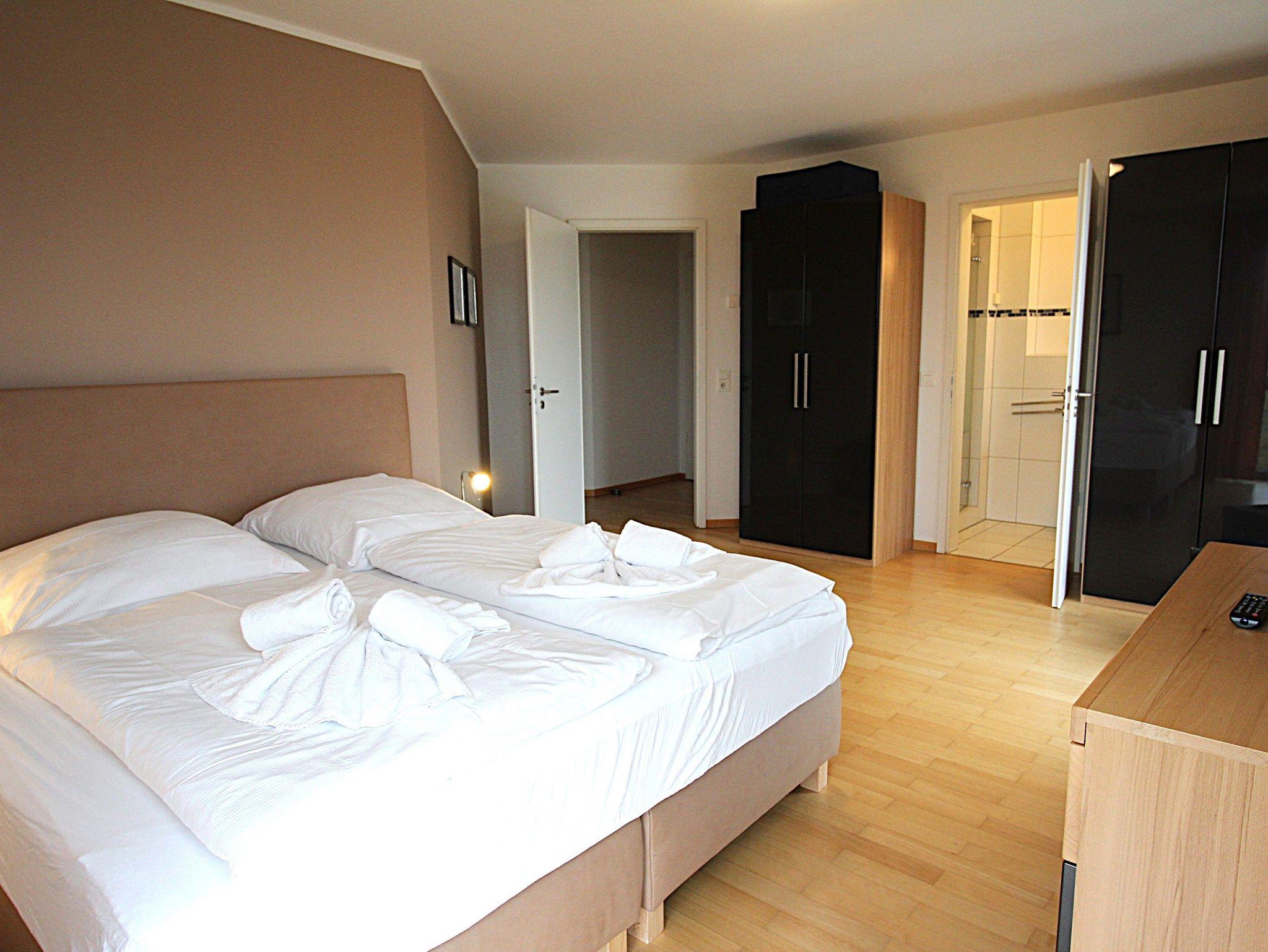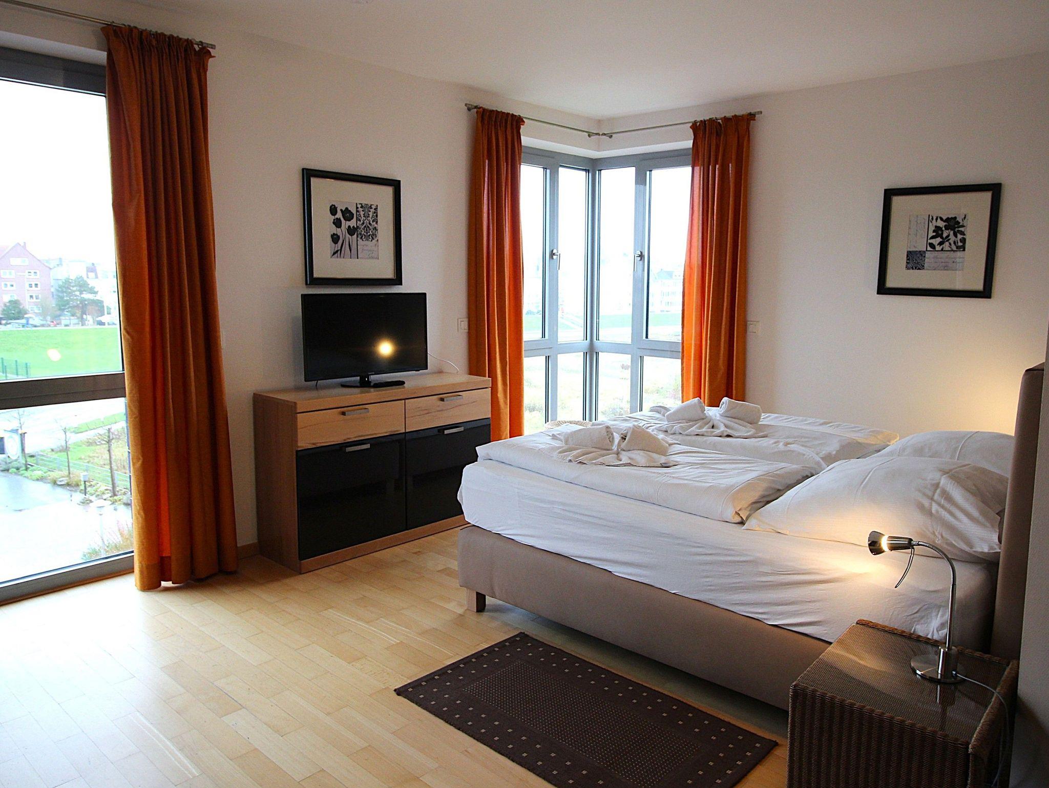 Das großzügige 3-Zimmer-Eckappartement bietet auf rund 100 m² Wohnfläche Platz für bis zu vier Personen. Bereits beim Frühstück eröffnet sich der Blick auf die vorbeiziehenden Schiffe des Weltschifffahrtswegs. Zwei Schlafzimmer sind jeweils mit komfortablen Doppel-Boxspringbetten (180 × 200 cm und 160 × 200 cm) ausgestattet. Eines der Schlafzimmer verfügt über ein eigenes Bad mit Dusche und WC. Darüberhinaus steht ein weiteres Badezimmer mit Badewanne, separater Dusche und WC zur Verfügung.