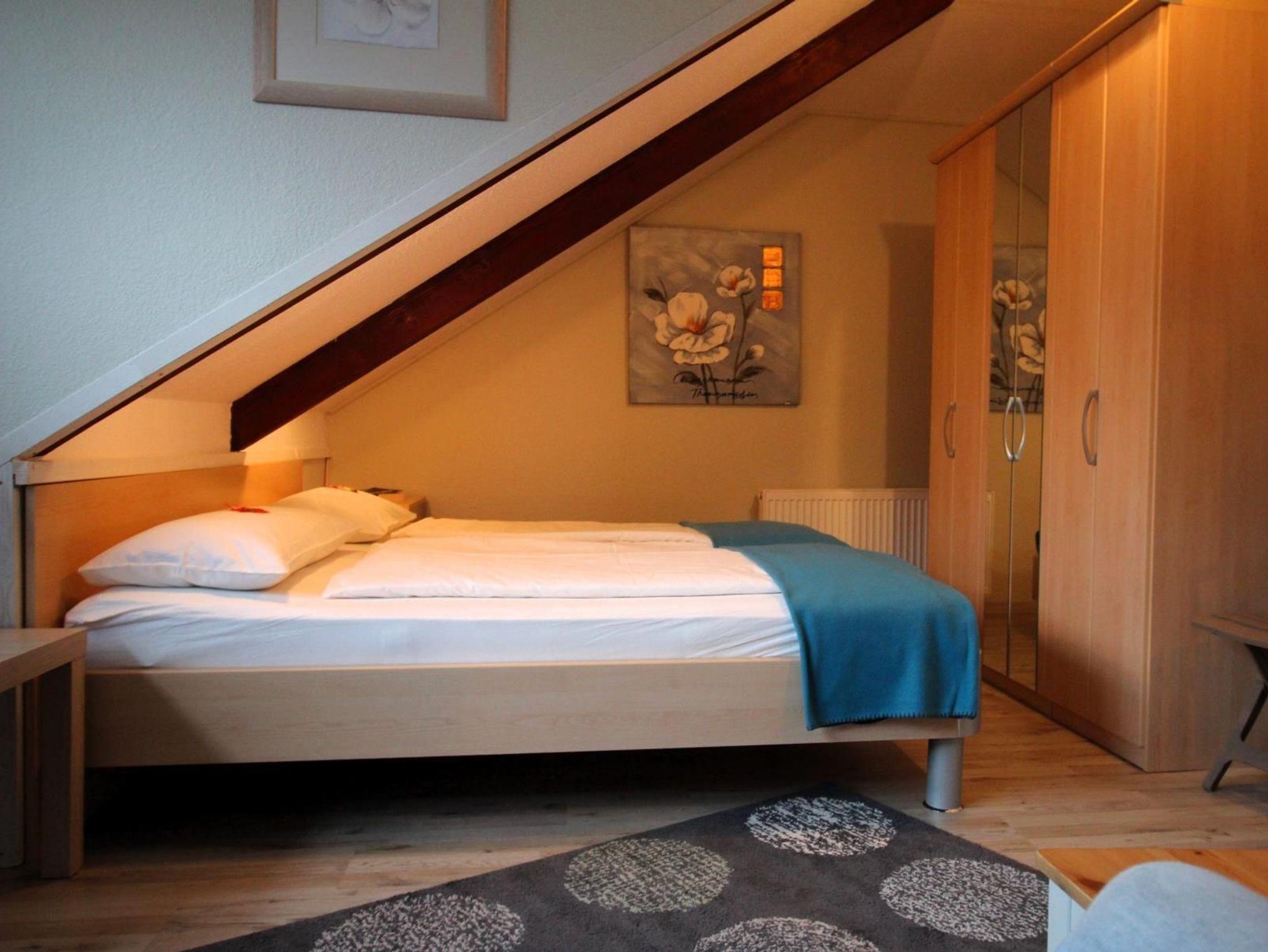 Sie wohnen in einem modernen, ca. 40 m² großen 2-Zimmer Appartement fur bis zu 2 Personen im 1. Obergeschoss mit separatem Eingang. Im Flur finden Sie an der Garderobe genugend Platz fur Ihre Jacken und Mäntel. Der sich anschließende Wohnbereich empfängt Sie mit einer gemutlichen Wohnlandschaft und einem Flachbild-TV mit Mediareceiver fur den Empfang von Magenta-TV und Radio. Gegenuberliegend befindet sich eine komplett ausgestattete Kuchenzeile mit Backofen, Mikrowelle, Kaffeemaschine und weiteren E-Geräten fur den täglichen Bedarf sowie der separate Essplatz. Vom Flur ausgehend betreten Sie das Tageslicht-Duschbad mit WC, selbstverständlich gehört auch ein Föhn zu Ihren Annehmlichkeiten. Im Schlafzimmer finden Sie ein großes Doppelbett sowie einen geräumigen Kleiderschrank und fur eine erholsame Nachtruhe elektrische Außenjalousien. In der gesamten Wohnung haben Sie kostenfreien WLAN Internetzugang und vor dem Haus befinden sich Parkmöglichkeiten.