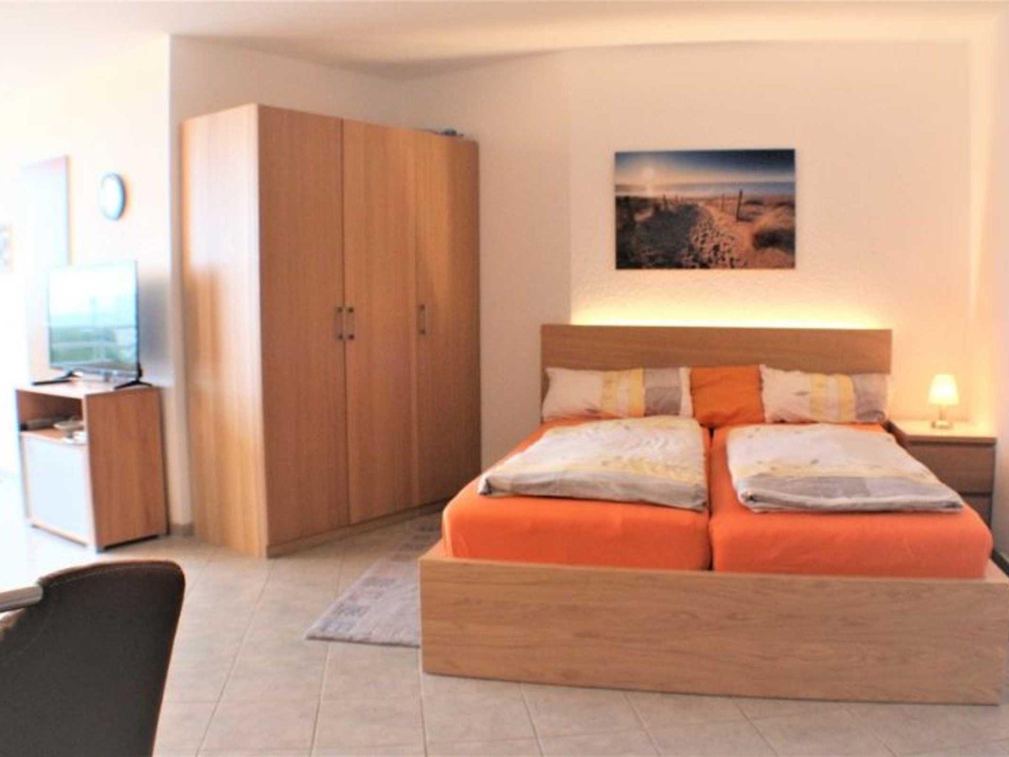 4. Person. Wohn-/Schlafzimmer mit Doppelbett, separater Essplatz, voll ausgestatteter Küchenbereich mit