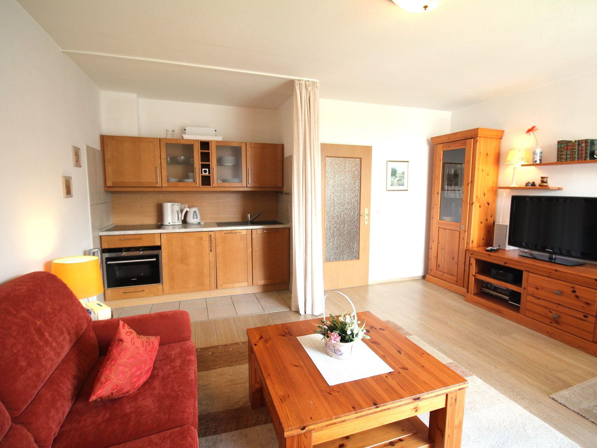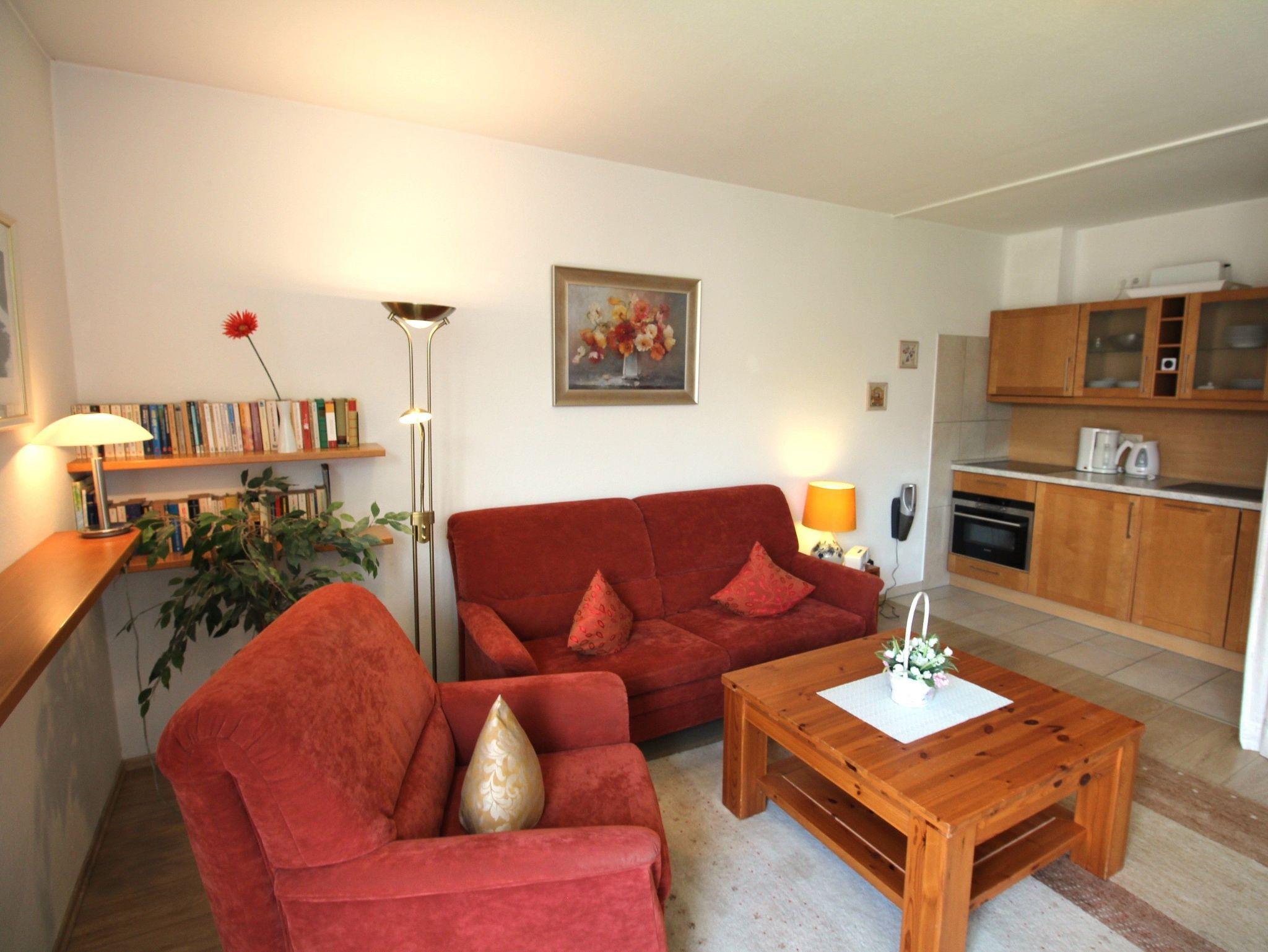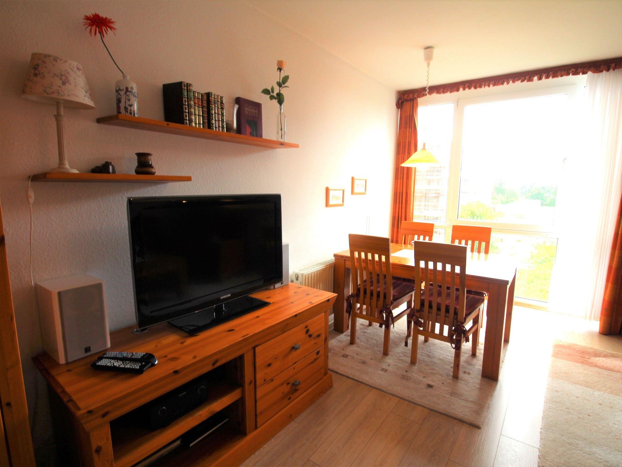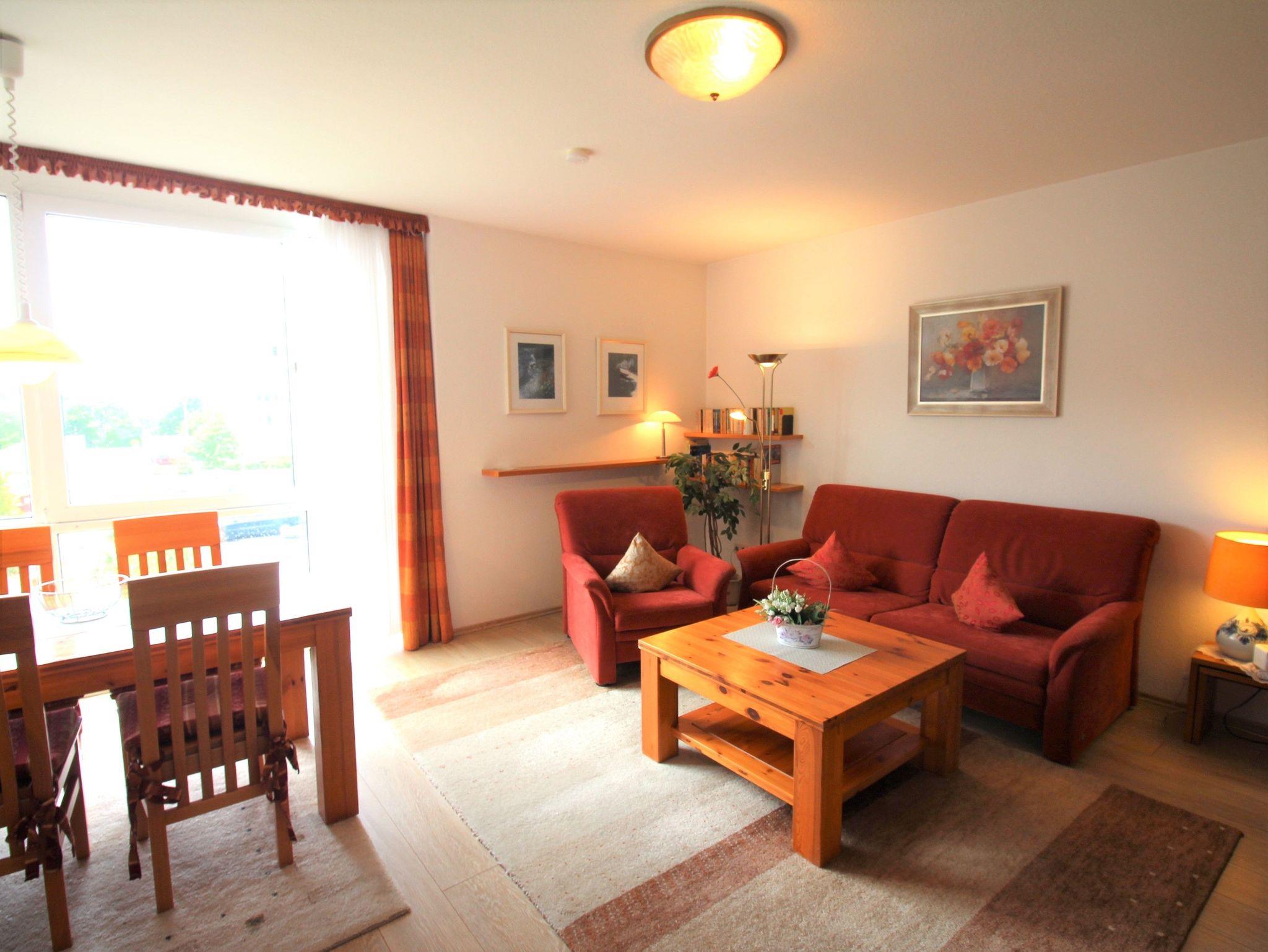 2-Zimmer-Appartement für bis zu 4 Personen auf ca. 46 m² mit Seeblick. Schlafzimmer mit Doppelbett, Wohn-Schlafraum mit Doppelbettcouch, TV, separatem Essplatz, voll ausgestattetem Küchenbereich, Balkon oder Terrasse, Bad mit Dusche/WC. WLAN und PKW-Stellplatz vorhanden.