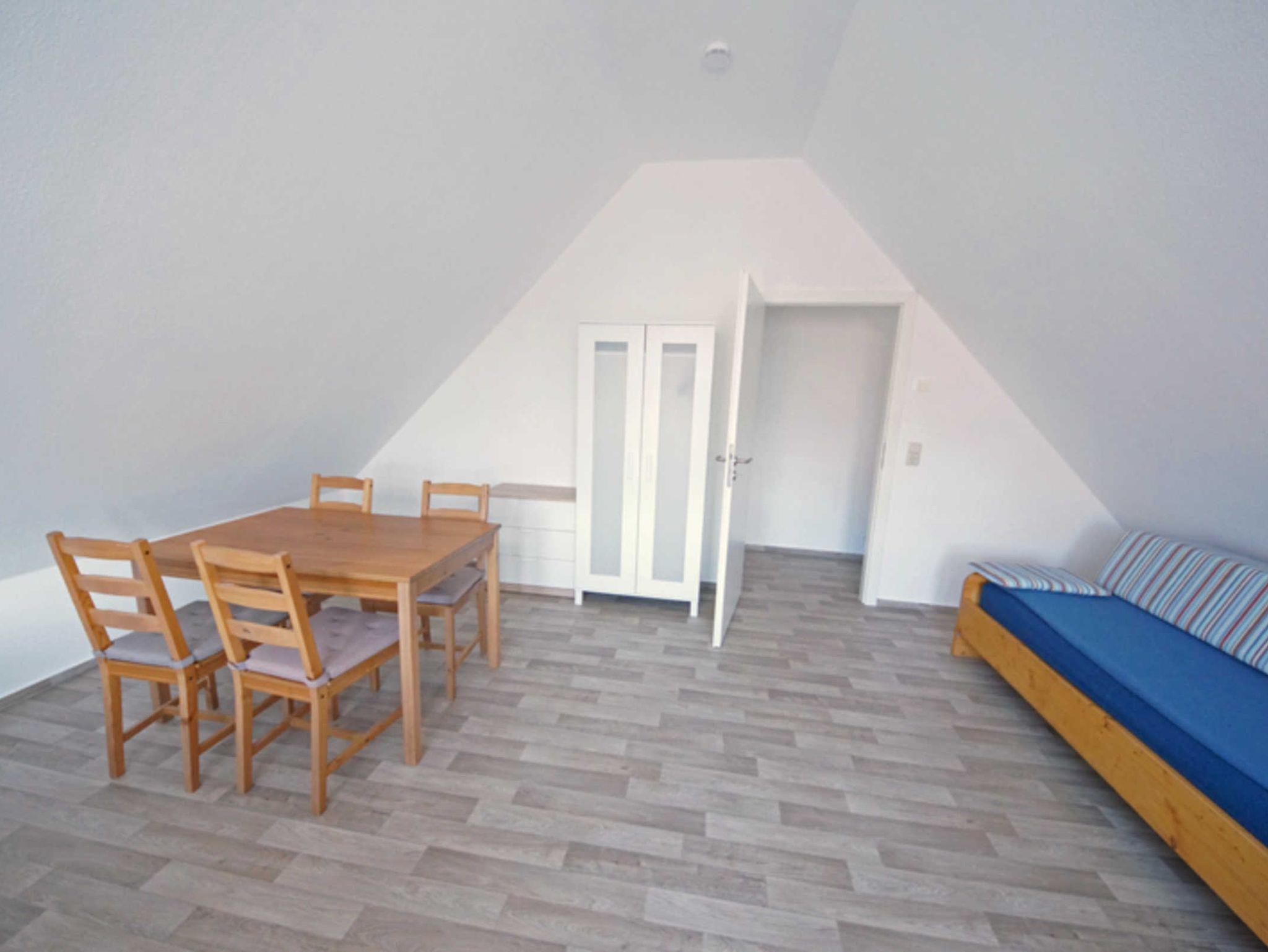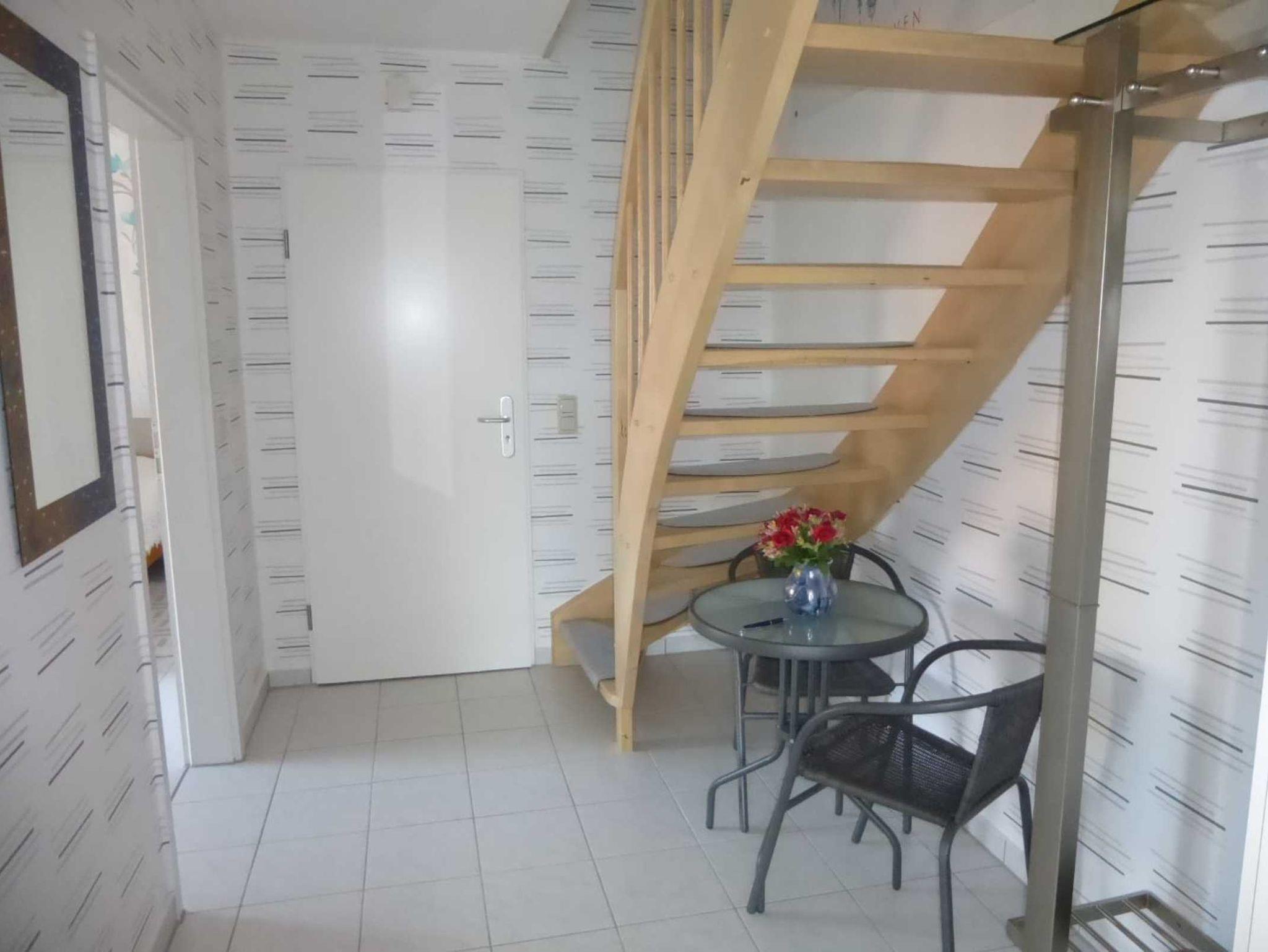 Die Ferienwohnung befindet sind sich in einer kleinen gepflegten Wohnanlage im Obergeschoss mit Balkon zur Gartenseite. Die Wohnung bietet Platz für 2 - 5 Personen. Zu der Wohnung gehört ein eigener abschließbarer Schuppen, wo Sie Ihre Fahrräder und andere Gerätschaften unterbringen können.