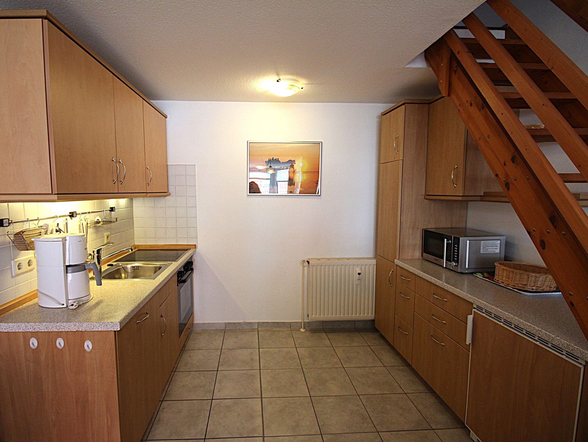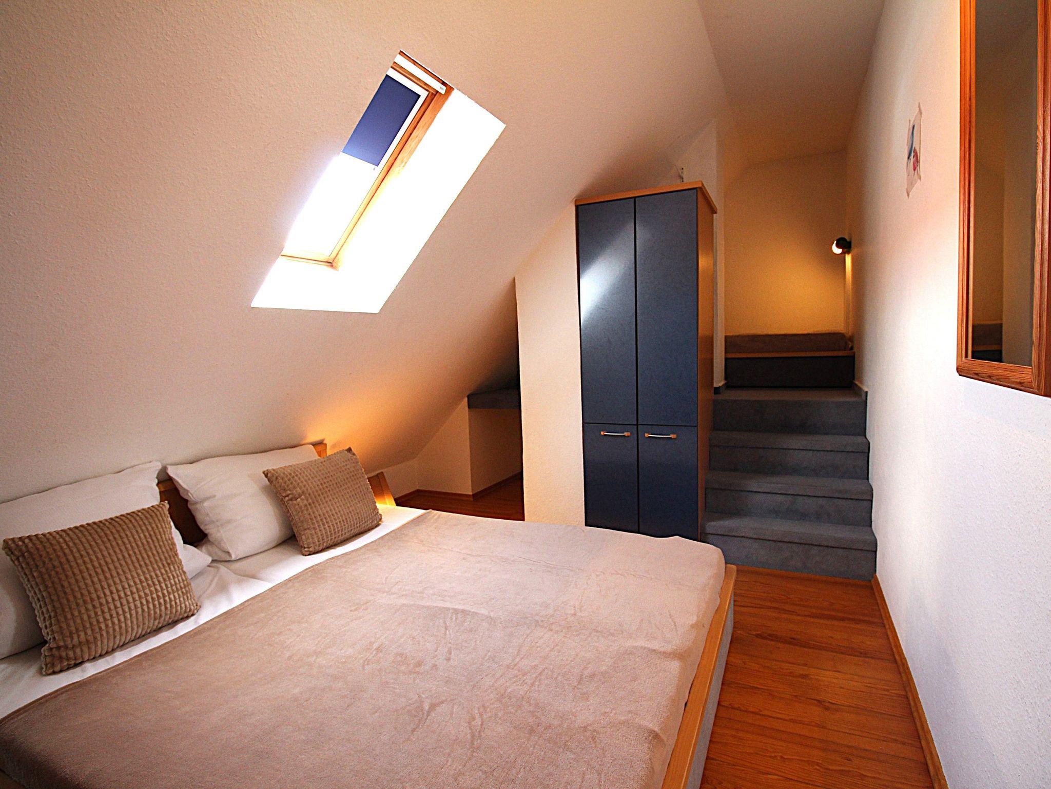 Im oberen Bereich befindet sich das 2. Schlafzimmer mit Doppel- und Einzelbett, dass Sie über eine schmale Holztreppe im Wohnraum erreichen. Die Dachschrägen sorgen für ein extra gemütliches Flair und das dritte Einzelbett ist in eine kleine Koje eingebettet, supergemütlich und ideal für Kinder. Kostenloser WLAN/LAN Internetzugang ist selbstverständlich vorhanden, für Ihren PKW steht Ihnen ein sicherer Stellplatz in der Tiefgarage zur Verfügung.