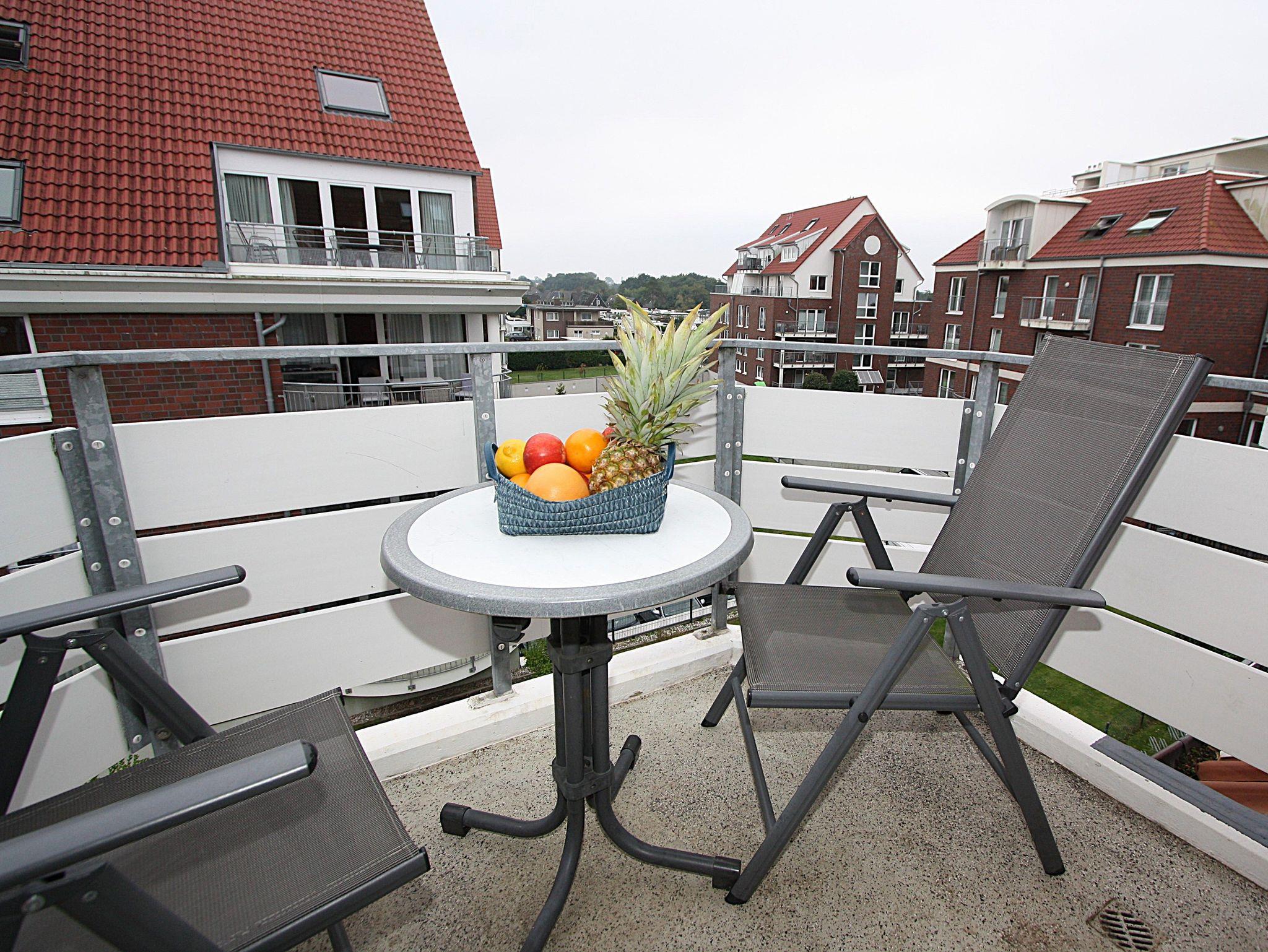 Sie wohnen direkt gegenüber des Strandzugangs in einem 3-Zimmer-Appartement für bis zu 5 Personen auf ca. 56 m² in der 3. Etage. Die Wohnung ist im Haus mit dem Aufzug erreichbar und teilt sich in eine charmante Maisonette Wohnung mit zwei Etagen auf.
