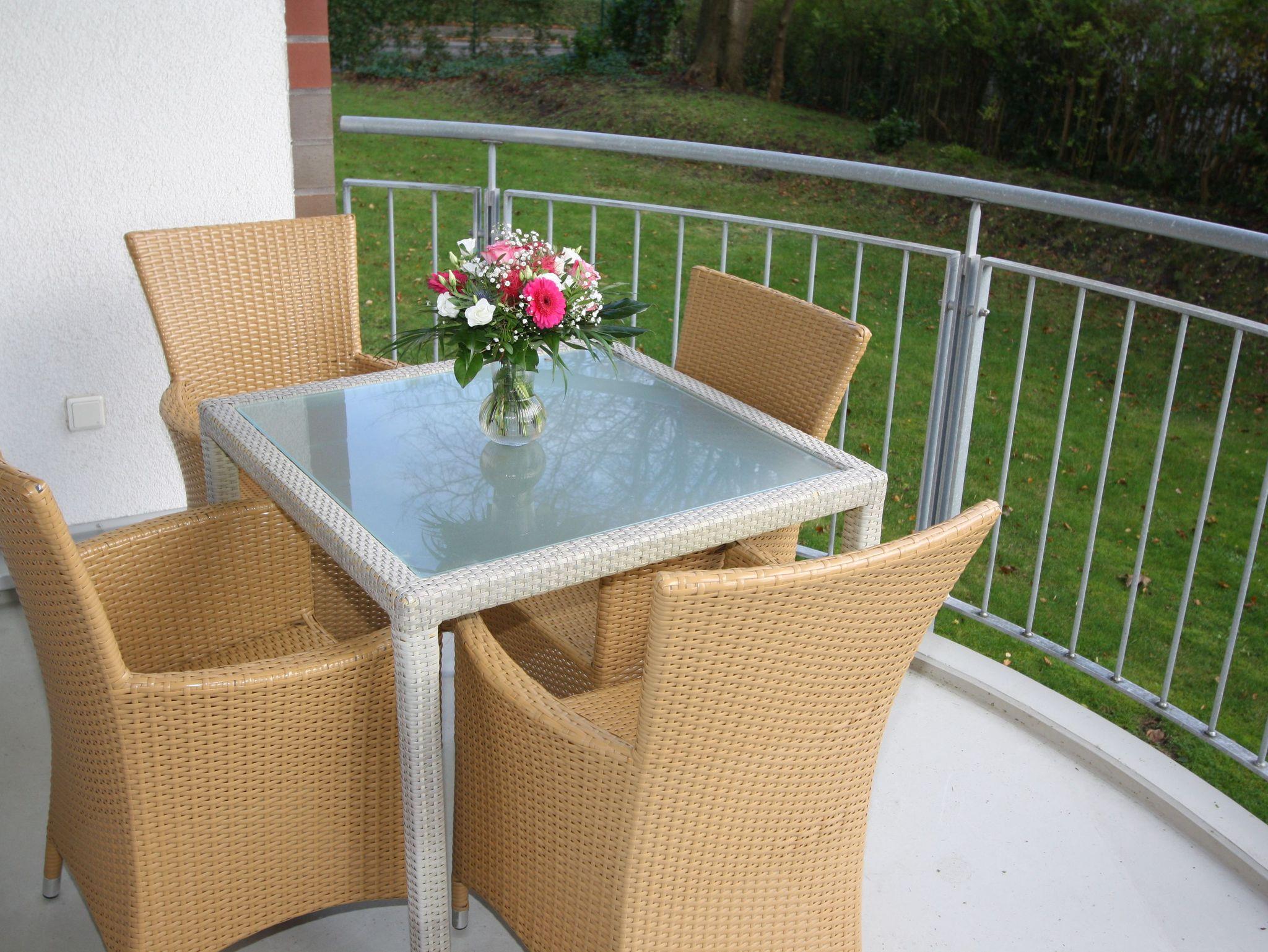 großer möblierter Balkon.
