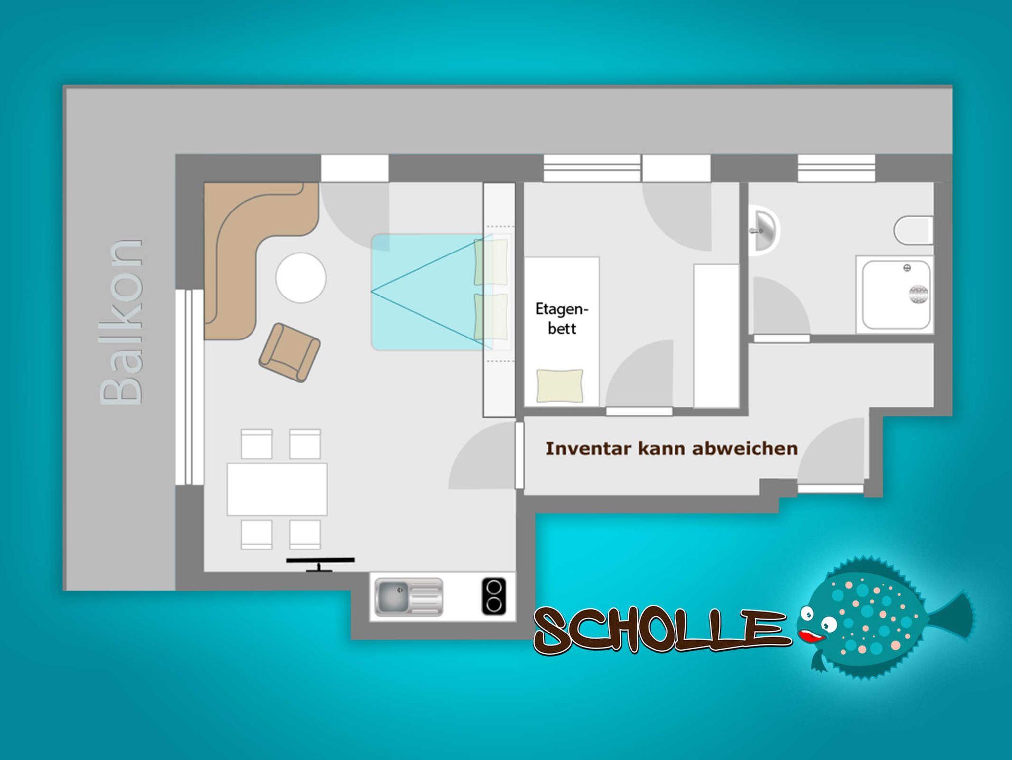 Die Ferienwohnung Scholle befindet sich im ersten Obergeschoss und bietet Platz für vier Personen.
