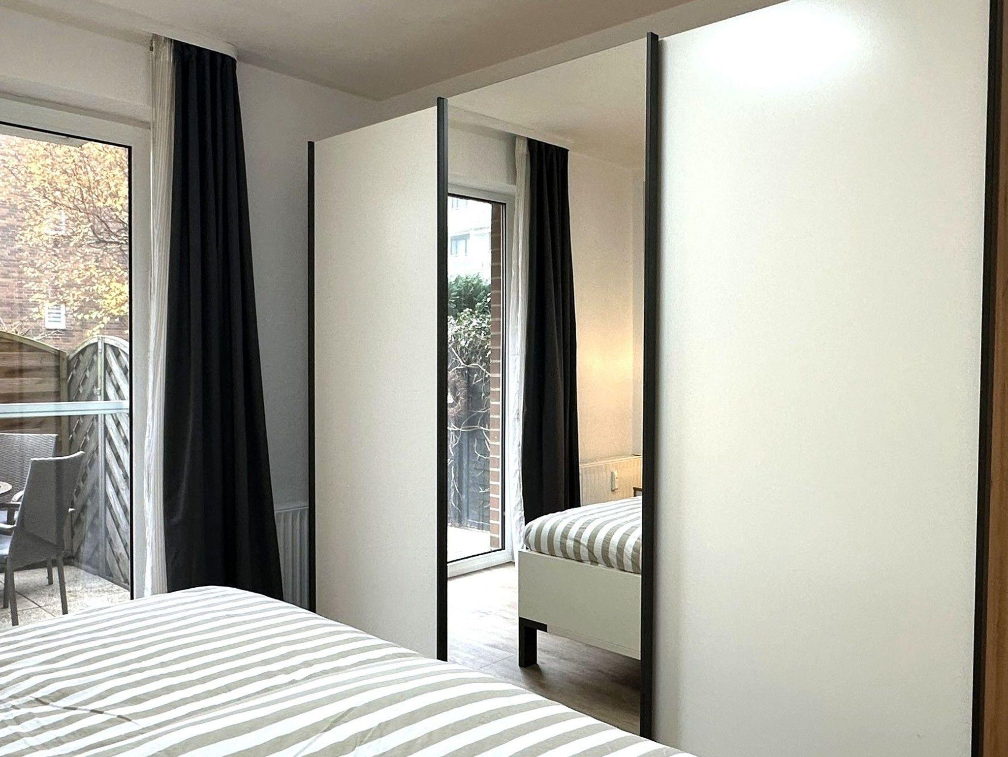 Sie haben ein separates Schlafzimmer mit einem Komfort-Doppelbett (200 x 200) und direktem Zugang zur Terrasse in Süd-Ost-Ausrichtung. Die Terrassentür sowie das Wohnzimmerfenster sind mit einem stabilen Insektenschutzgitter ausgestattet, sodass Sie ohne lästigen Besuch lüften können.