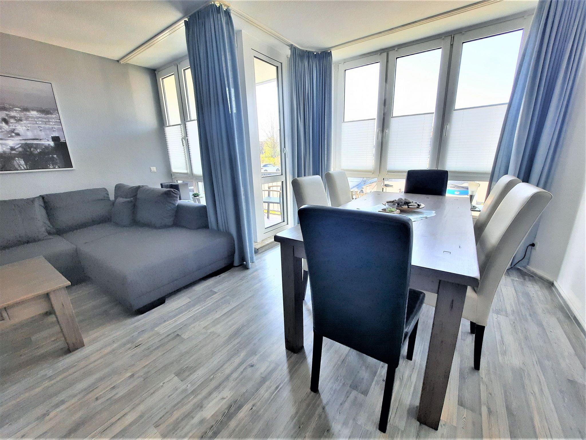 Sie wohnen in einem 3-Zimmer-Appartement für bis zu 6 Personen auf ca. 66 m² Wohnfläche. Im Erdgeschoss finden Sie einen großen hellen Wohnraum mit einem Couchbett, separatem Essplatz,TV-Flachbildschirm 102 mit DVD-Player, voll ausgestatteter Küchenbereich mit Backofen, Mikrowelle und Geschirrspüler. Dusche/WC mit Handtuchheizkörper, separetem Gäste-WC,Balkon. Im Untergeschoss befinden sich ein Schlafzimmer mit Doppelbett und Fernseher, ein Schlafzimmer mit zwei getrennten Betten und Fernseher. Diegesamte Wohnung hat Laminatfußboden. Die Wohnung ist kindergerecht ausgestattet mit z.B. Hochstuhl, zusätzlichem Kinderbett, Kinder-Toilettensitz und Kindersicherung vor der Treppe.