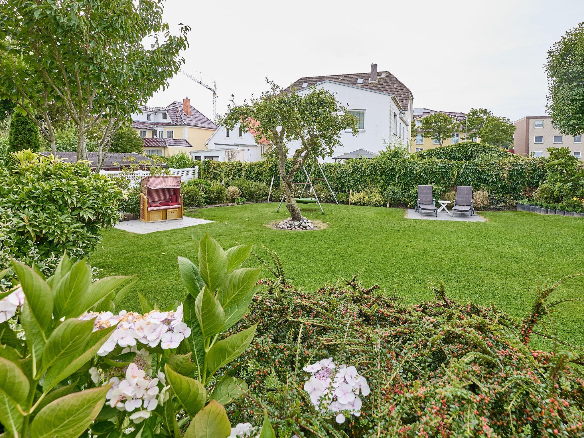 • Zusätzlich zur eigenen Terrasse, ein großer Gemeinschaftsgarten mit Terrasse, Gartenmöbeln und Strandkörben