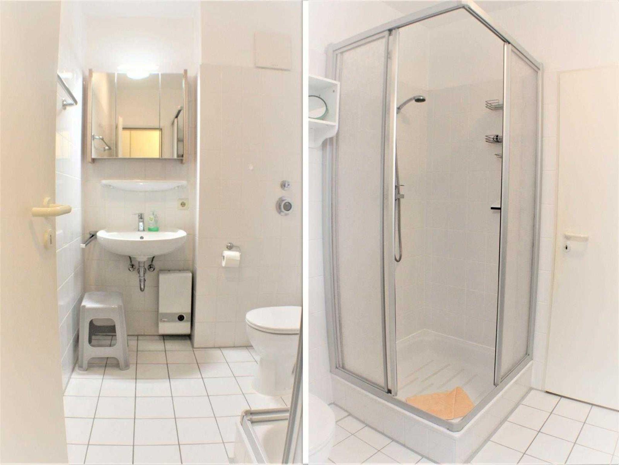 Wohnraum getrennt), separater Essplatz im Erker, voll ausgestatteter Küchenbereich, Dusche/WC, SAT-TV,