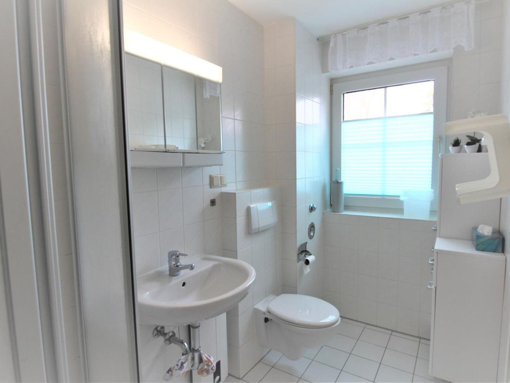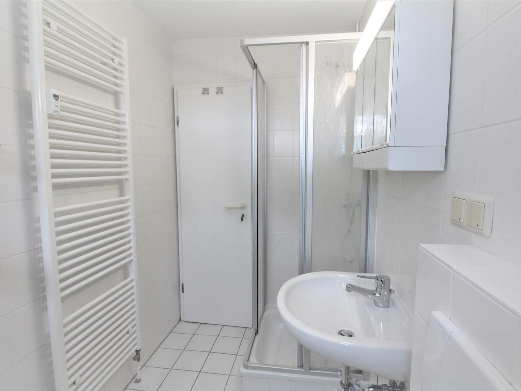 Zur Wohnung gehört ein Badezimmer mit Tageslicht. Hier ist neben dem WC und der Dusche auch ein