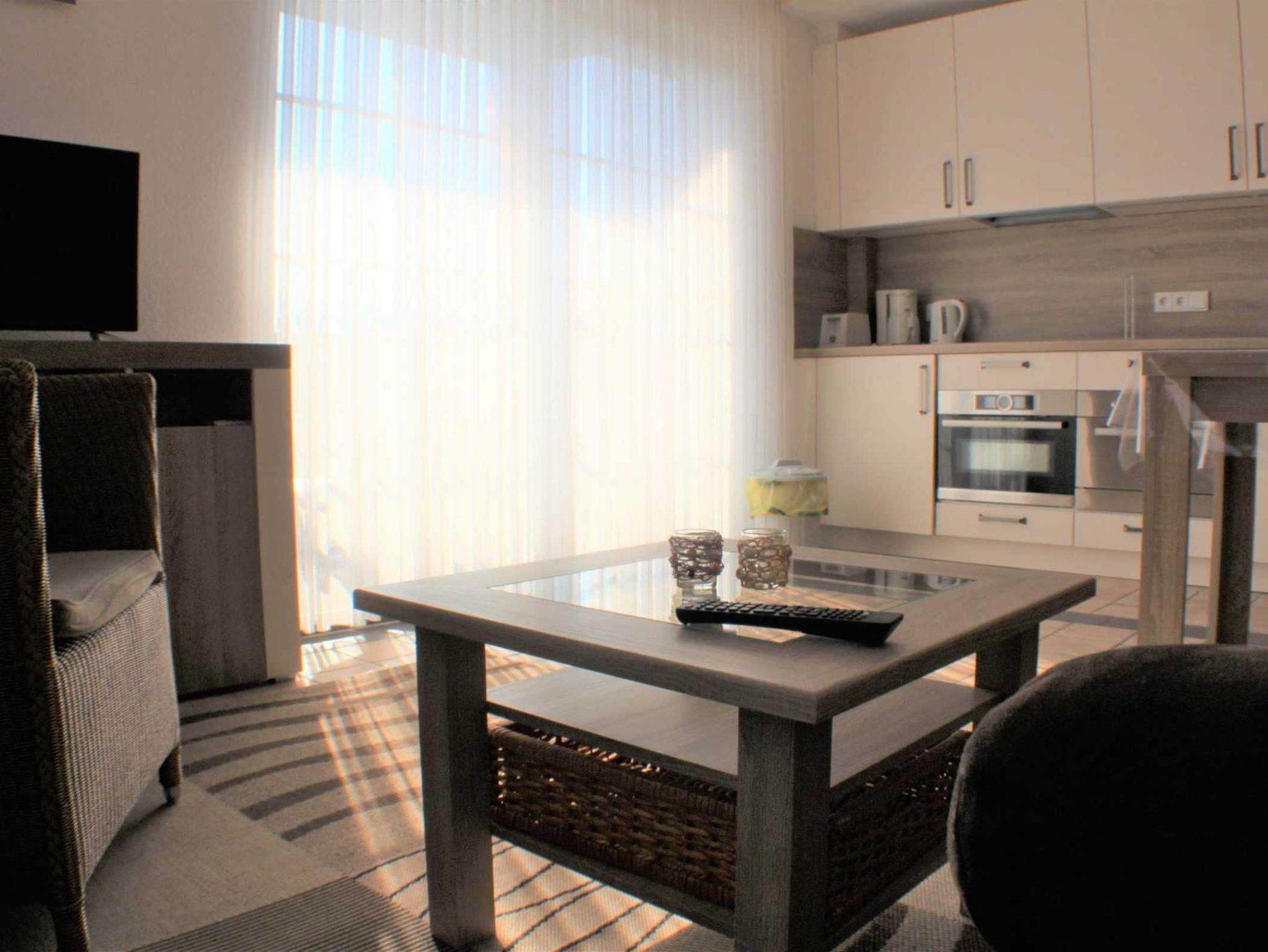 Sie wohnen in einem 3-Zimmer-Appartement in der ersten Etage auf ca. 47 m² Wohnfläche. Ein Schlafzimmer mit Doppelbett, ein Schlafzimmer mit einem Einzelbett, welches für die 4. Person ausgezogen werden kann, heller Wohnraum mit 2er-Couch und Sessel und mit SAT-LED-TV und Internetradio, separater Essplatz, voll ausgestattete Einbauküche mit Backofen incl. Mikrowelle und Spülmaschine, moderne Dusche/WC, Ost-Balkon.